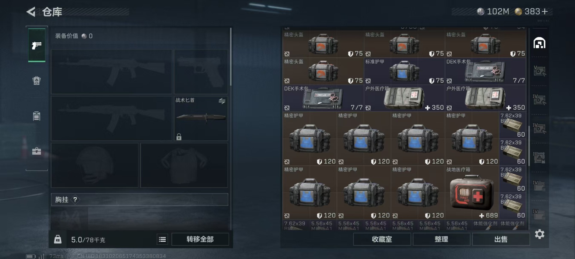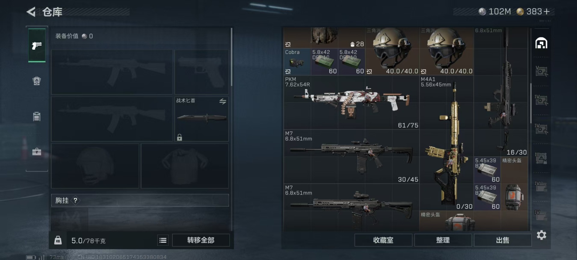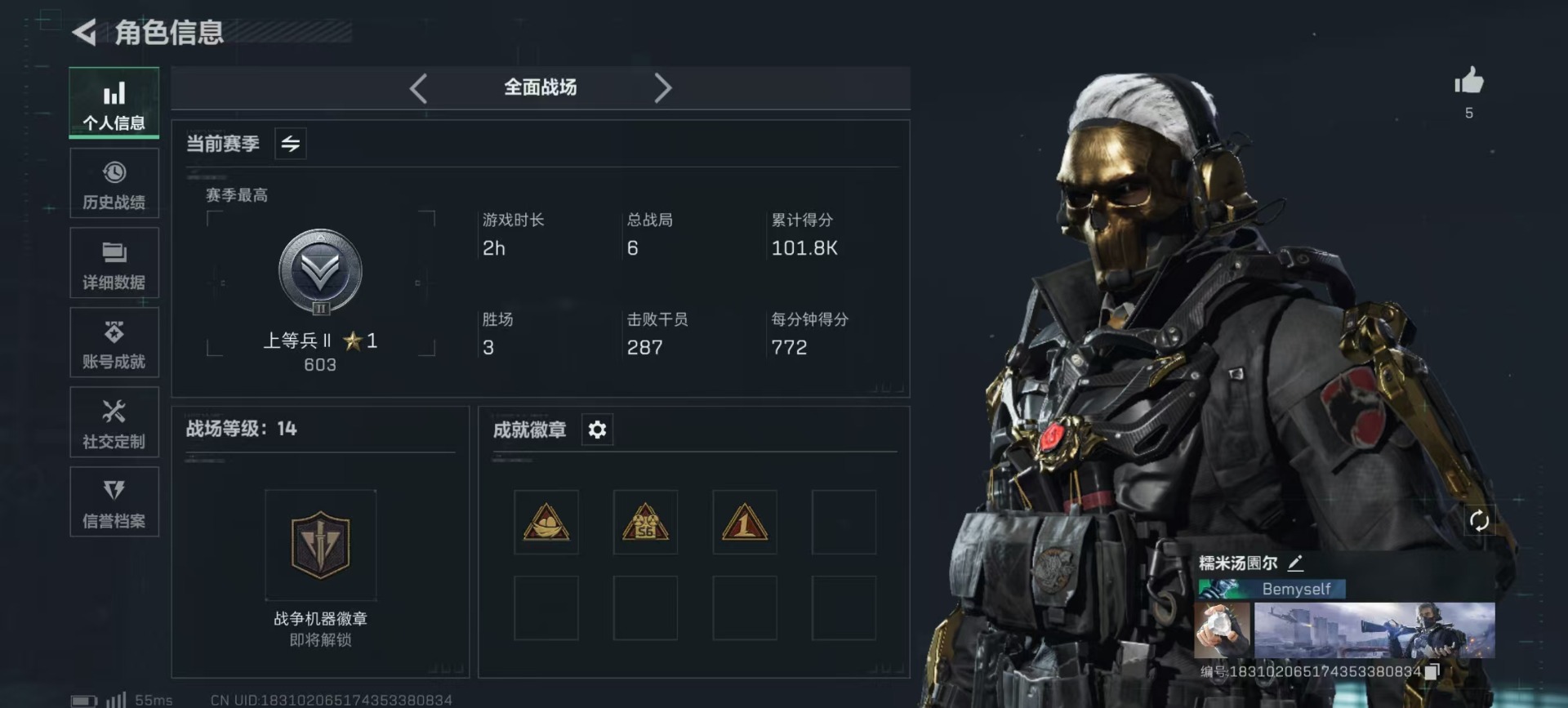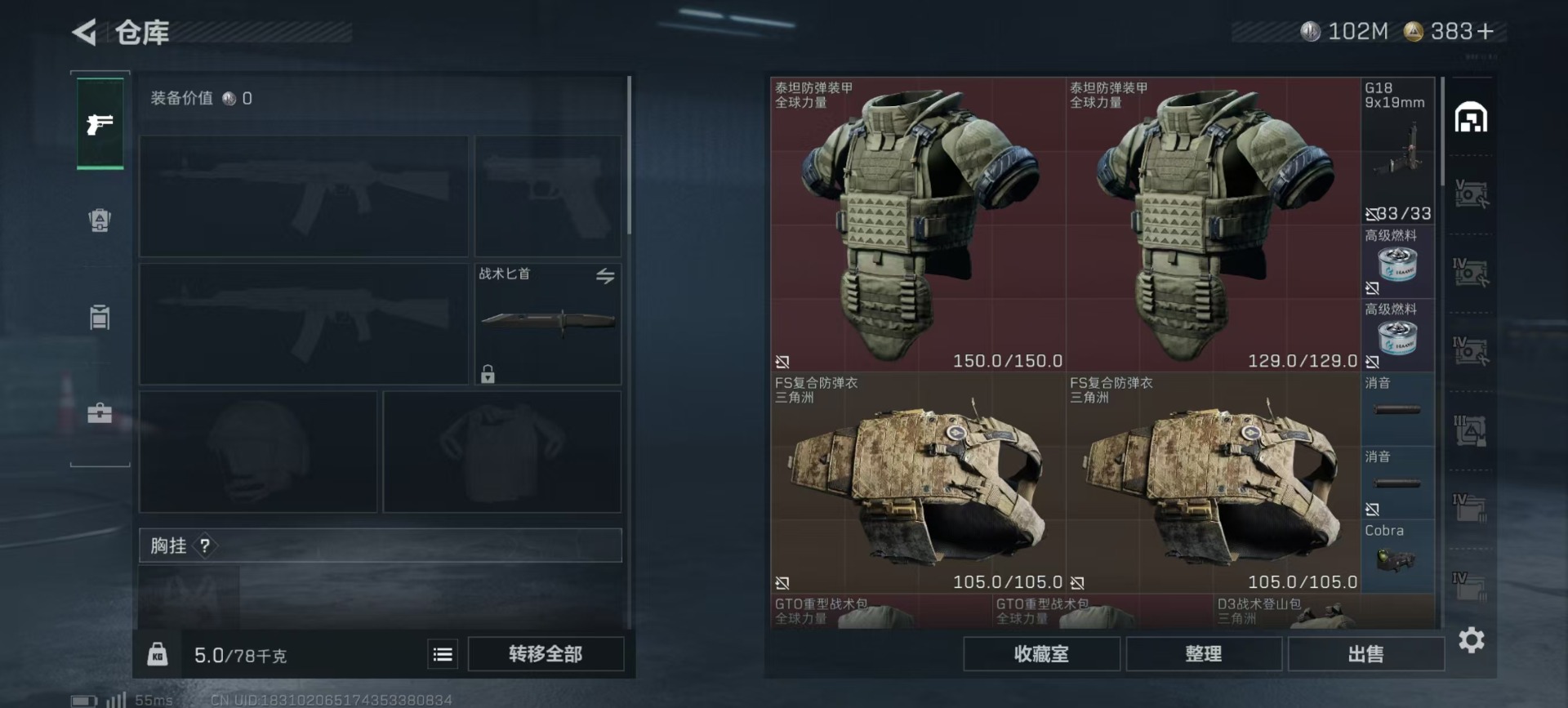 总资产:306.4M 1干员外观 17传说枪械 哈夫币:102K 可二次 可修改实名