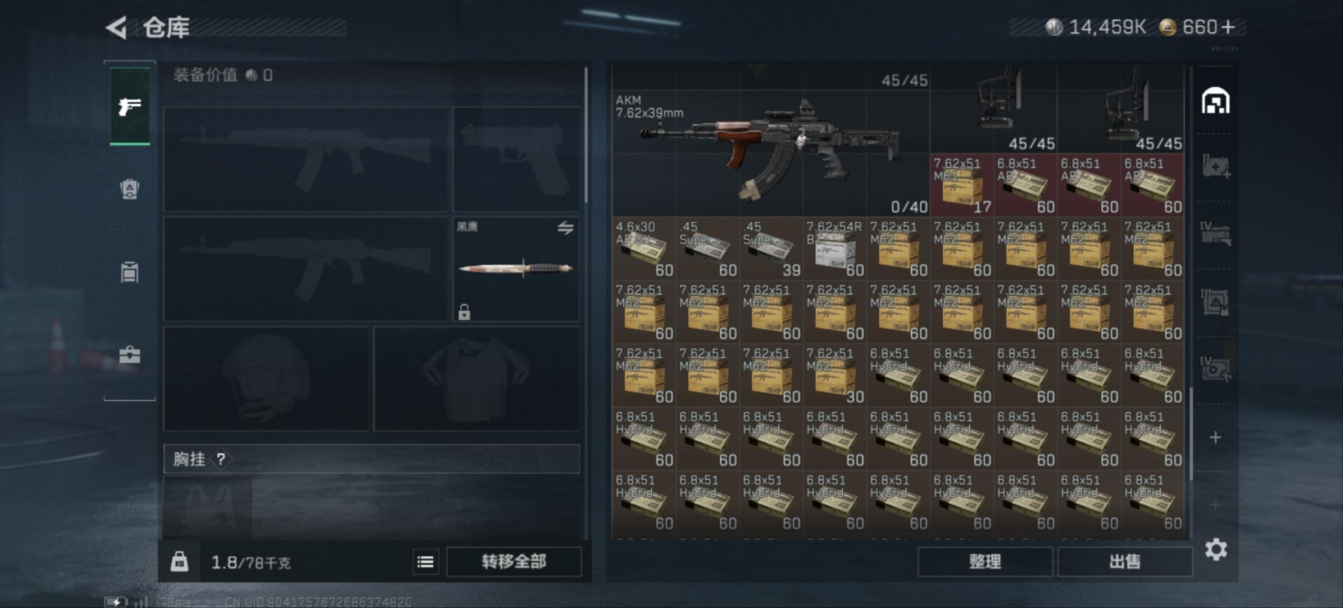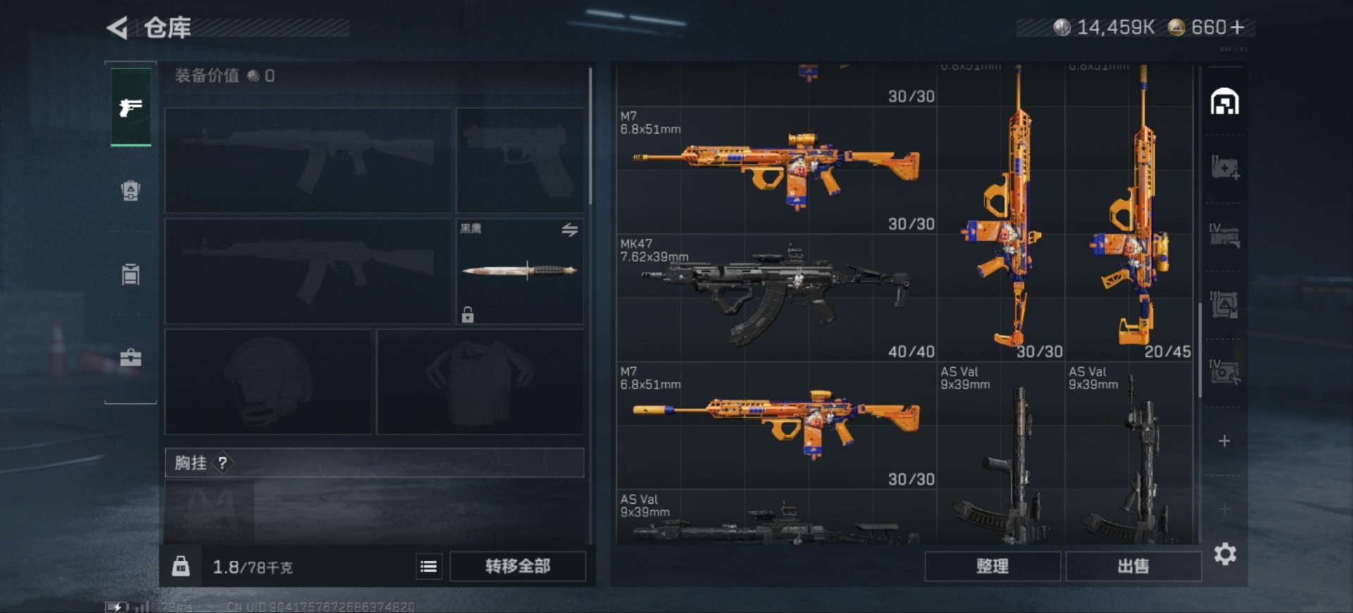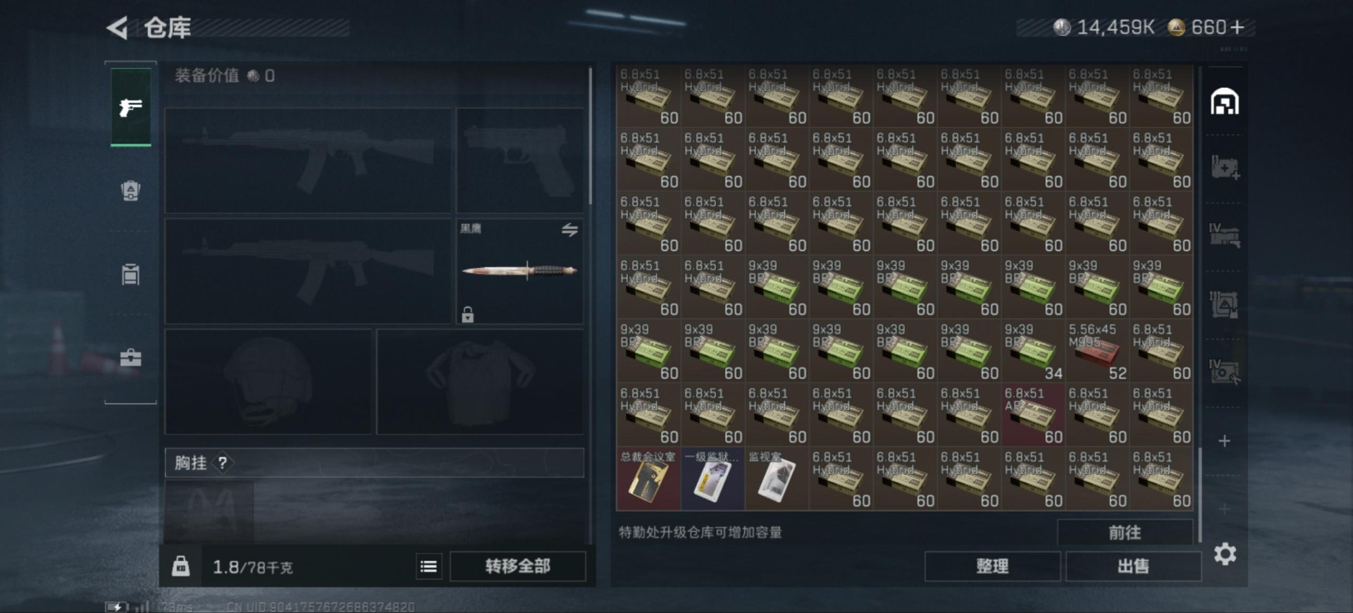 总资产:142.8M 2干员外观 14传说枪械 哈夫币:14.459K 可二次 可修改实名