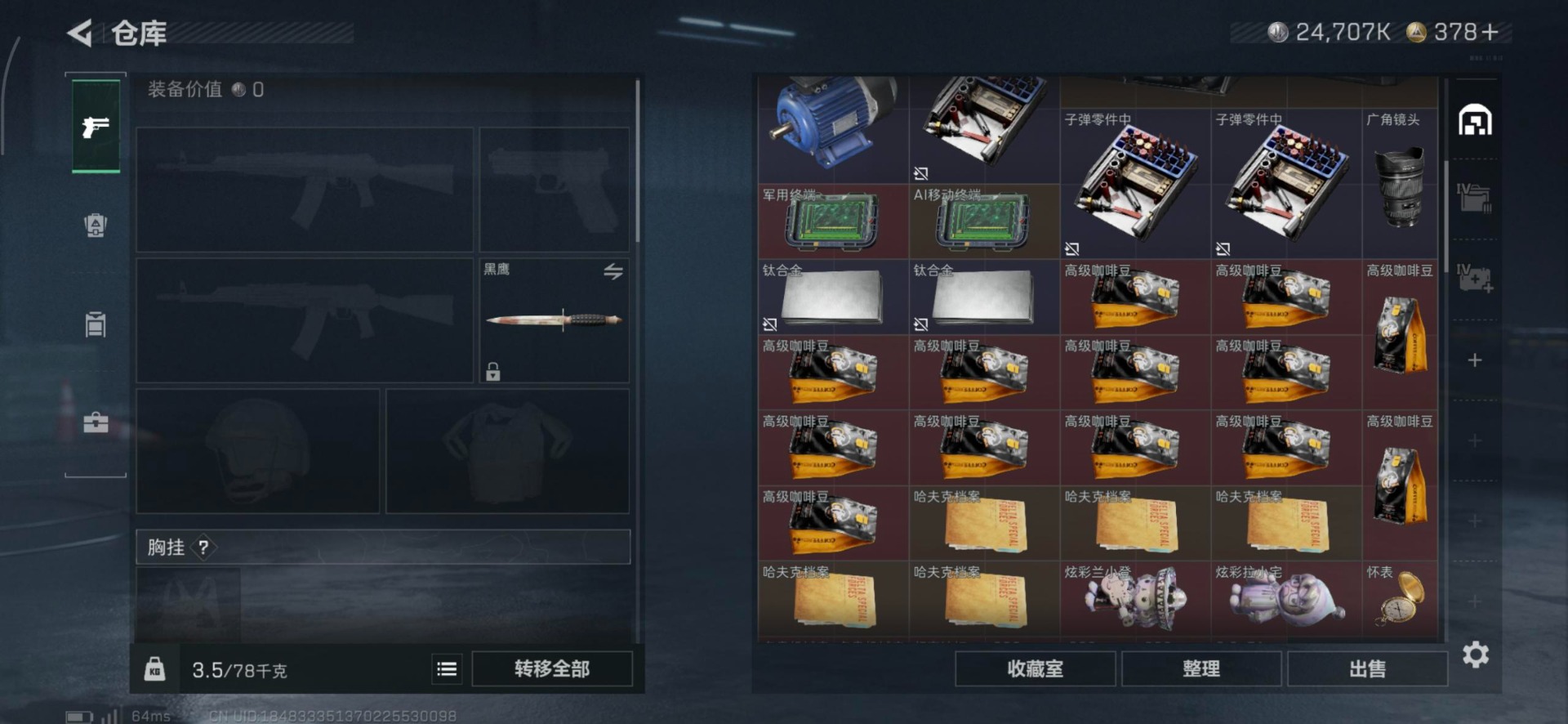 总资产:122.2M 1干员外观 4传说枪械 哈夫币:24.707K 可二次 可修改实名