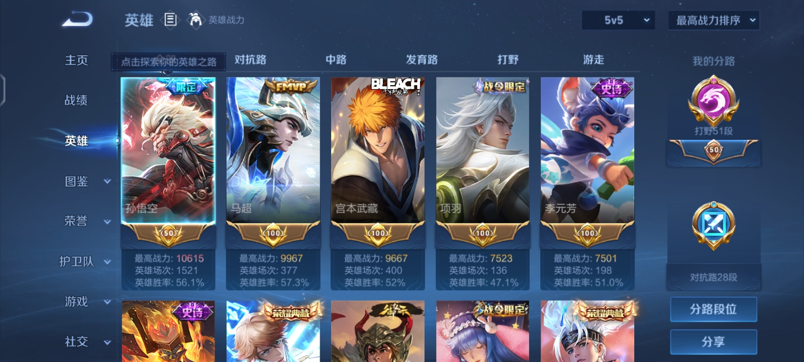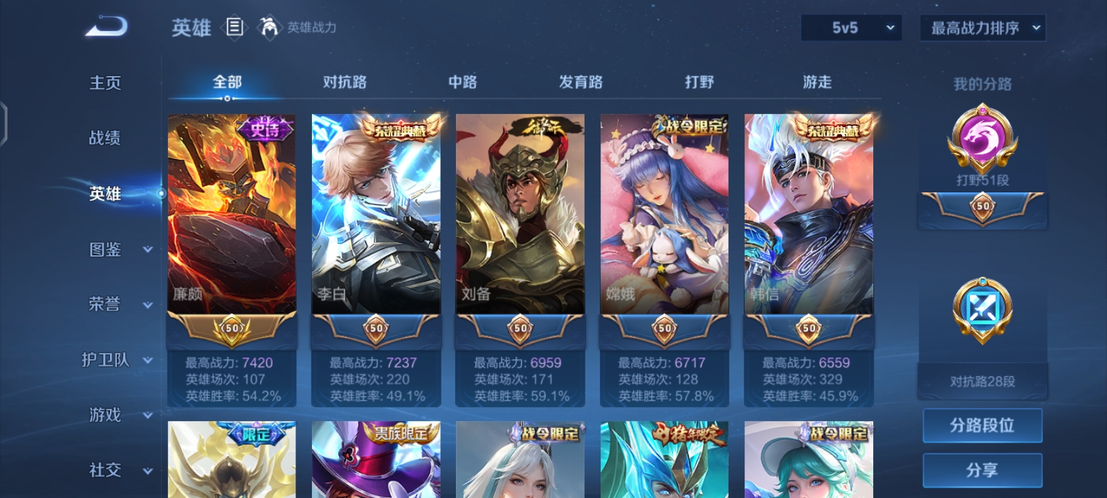 6金标2银标,51段打野,多资源,2千3紫星币,多个皮肤按键,带火线手游无装备小号,精品号126