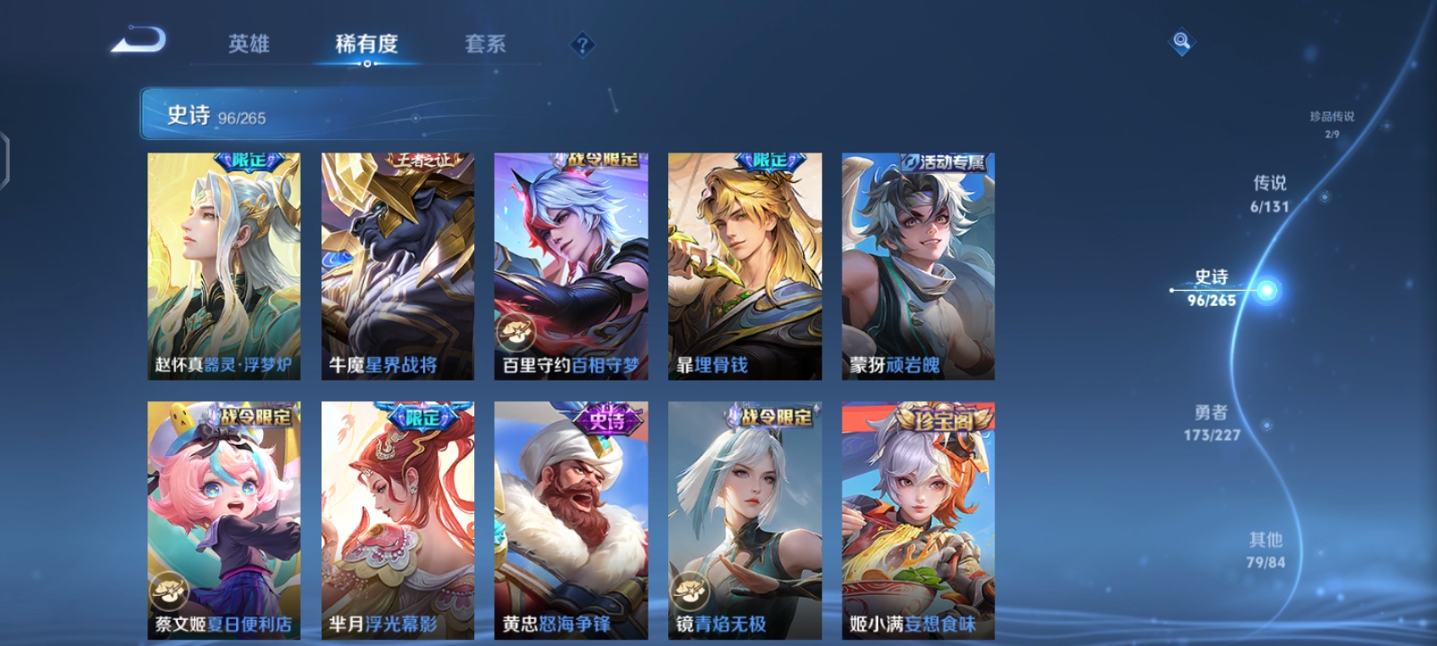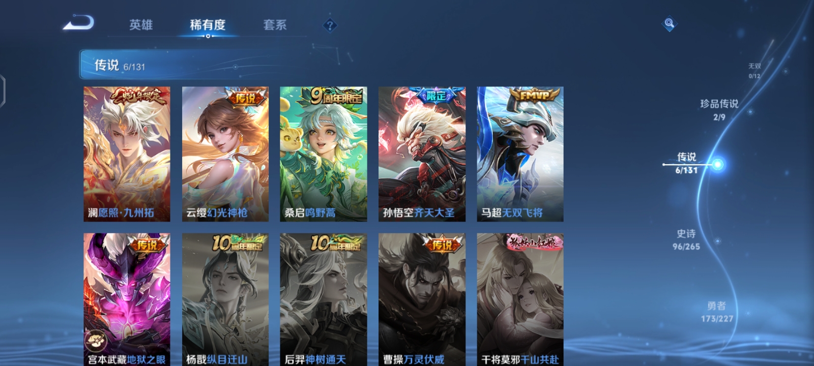 安卓QQ-2典藏-6传说-358皮肤-125英雄-最强王者-差3百贵8,2典藏2珍品6传说10星史诗2星传说,s41王者段位,16印记,满铭文,可以二次