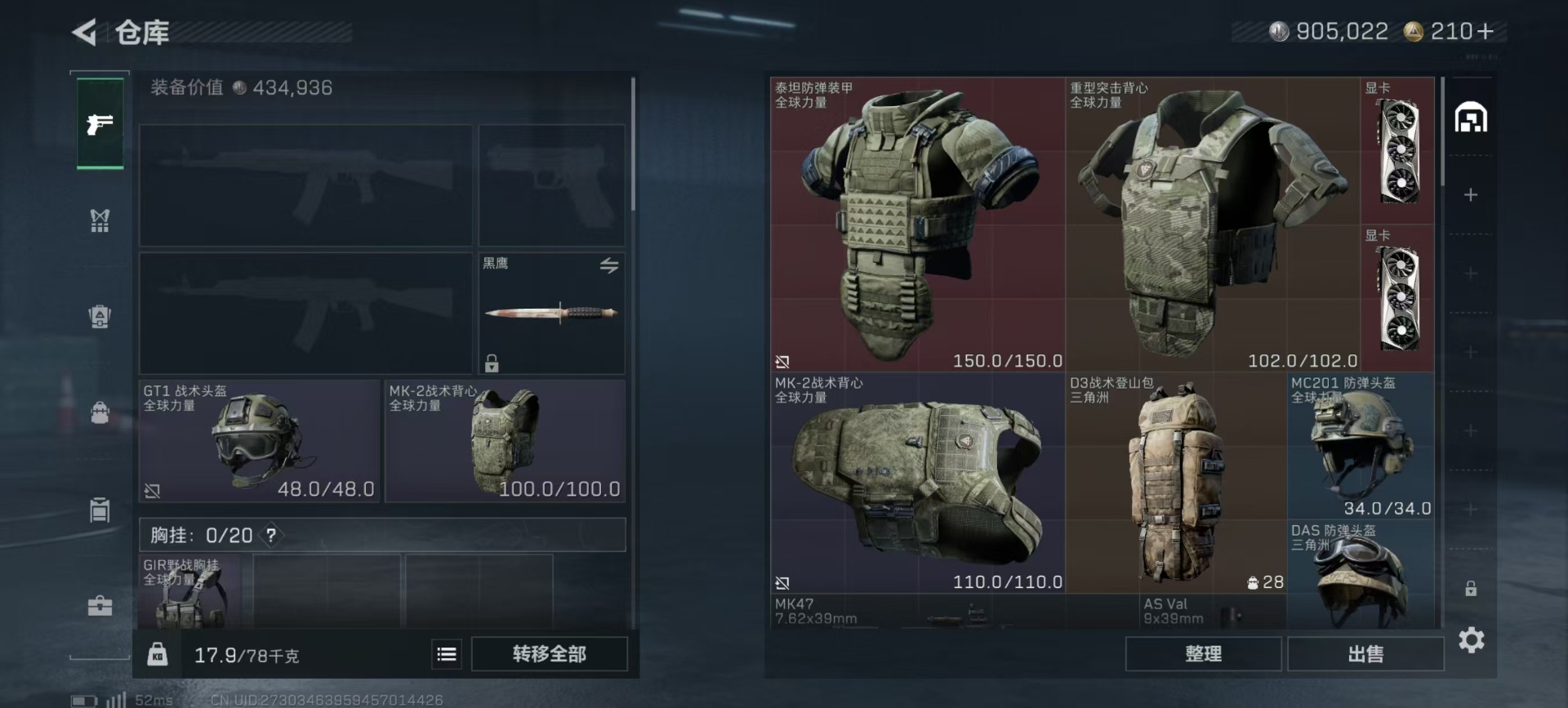 总资产:46.7M 1干员外观 8传说枪械 哈夫币:905.022K 可二次 可修改实名