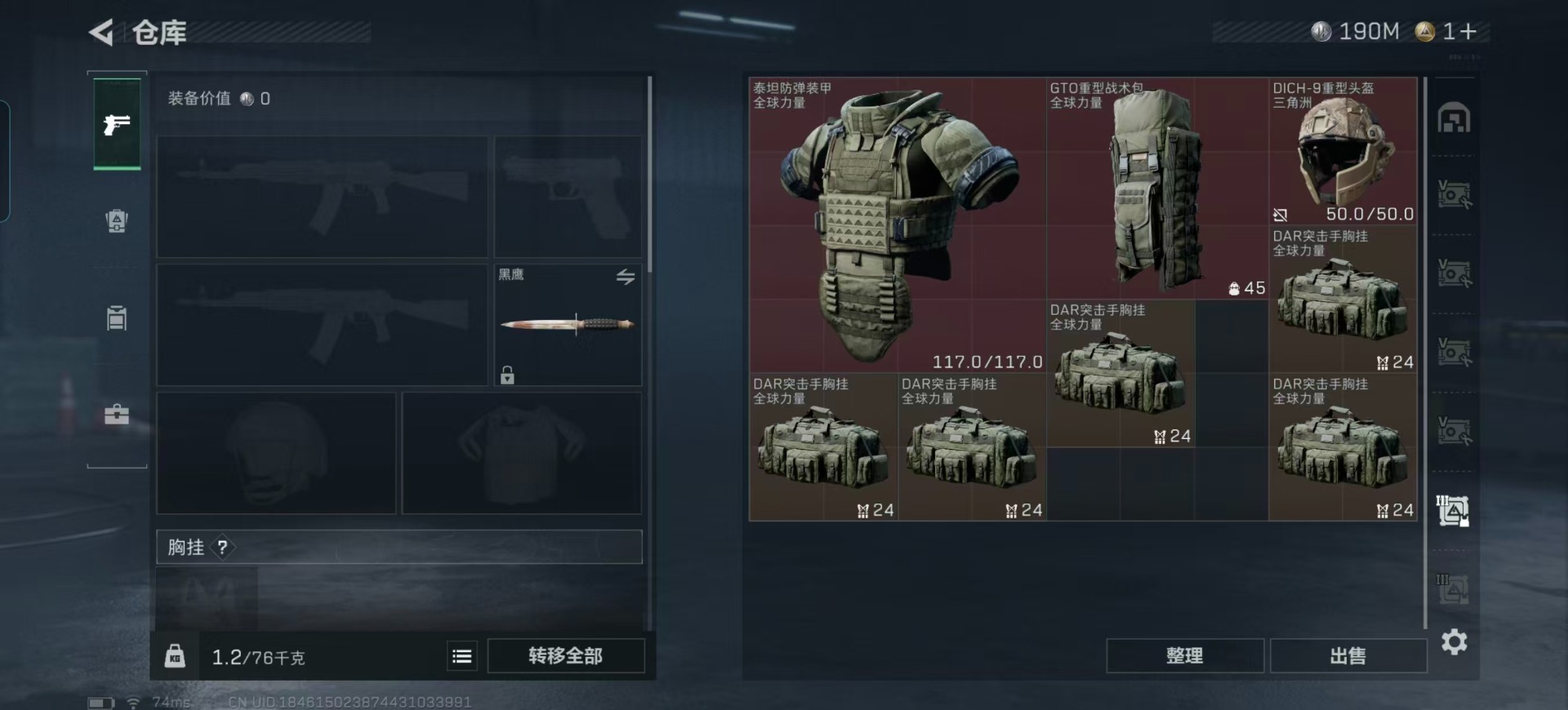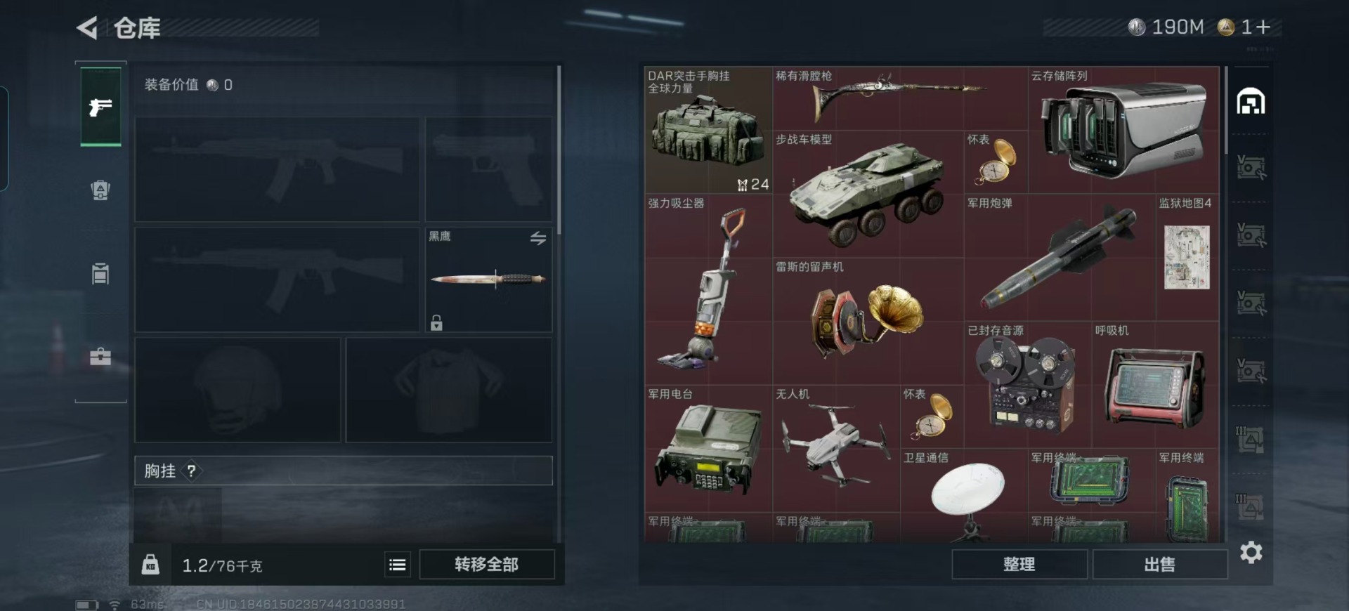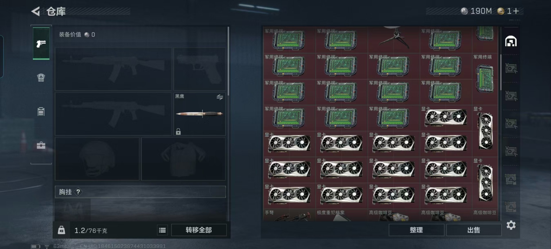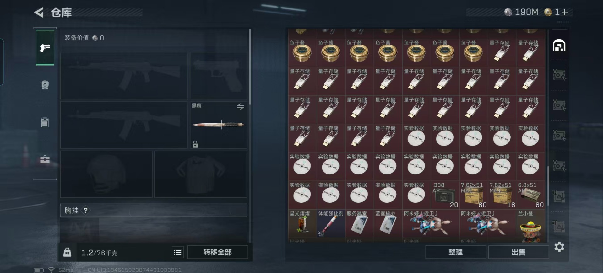总资产:460.4M 2干员外观 18传说枪械 哈夫币:190K 可二次 可修改实名