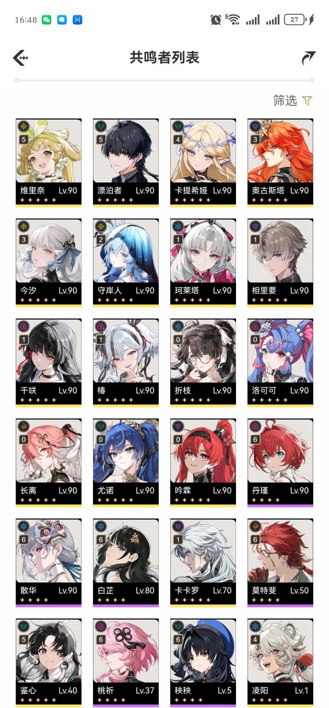 4+1卡提3+1今汐3命奥古,2命守岸人1命小土豆,千咲,相里要,椿。0命尤洛,洛可可长离折枝,吟霖