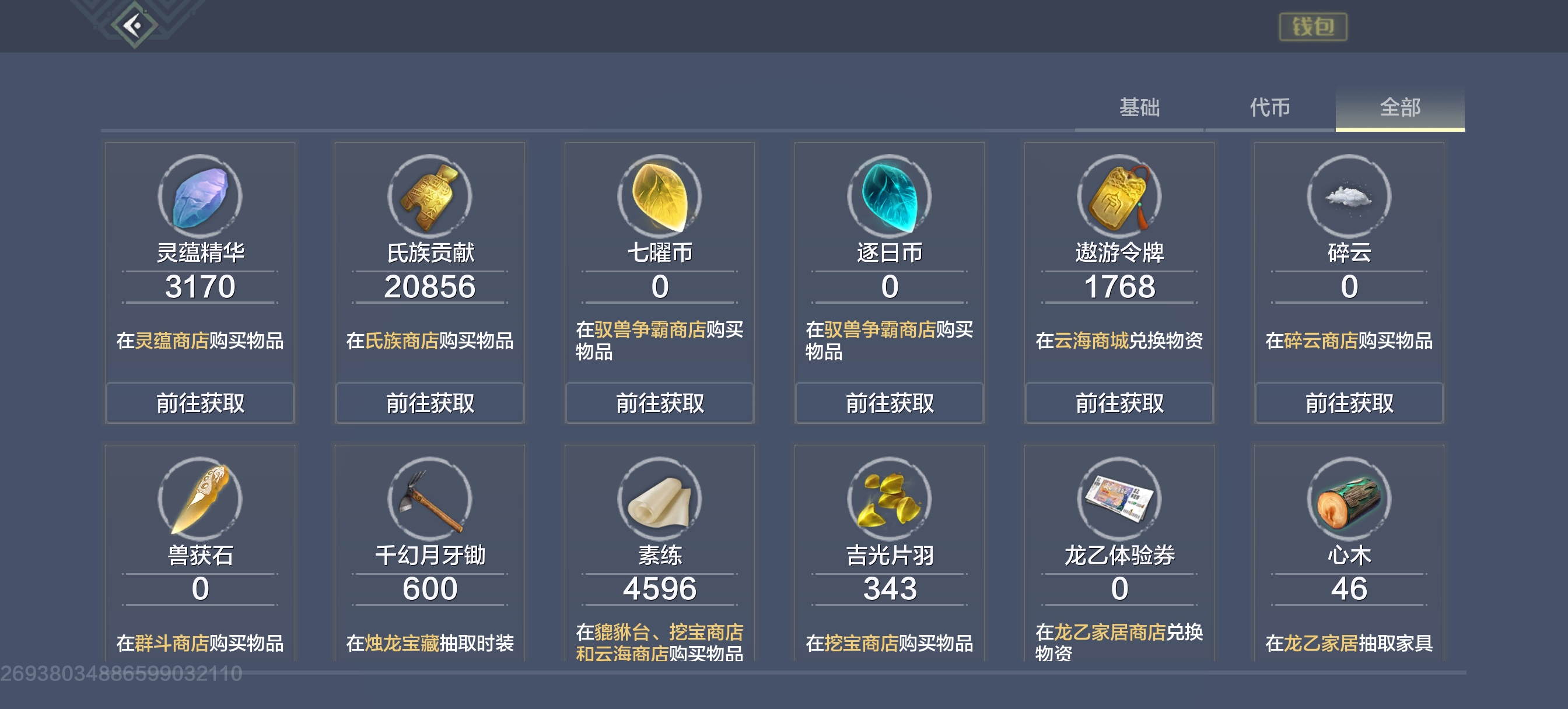 时装5,羽片300,印20多,五气石175,无限蛋1,三五万年2,神念果107,甲片1200。