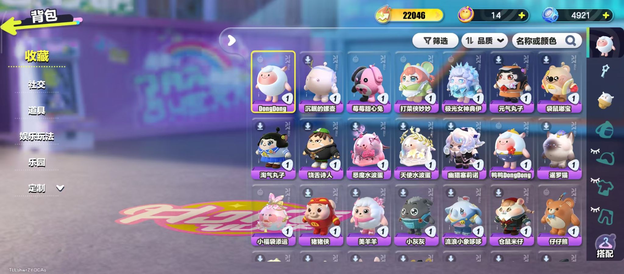 DongDong,沉眠的螺壶,莓莓甜心兔,打菜侠妙妙,极光女神典伊,元气丸子,袋鼠嘟宝,淘气丸子,饶舌诗人,恶魔水波蛋,天使水波蛋,幽猎塞莉诺,鸭鸭DongDong,暹罗猫,小福袋添运,猪猪侠,美羊羊,小灰灰,流浪小象哆哆,仓鼠米仔,仔仔熊