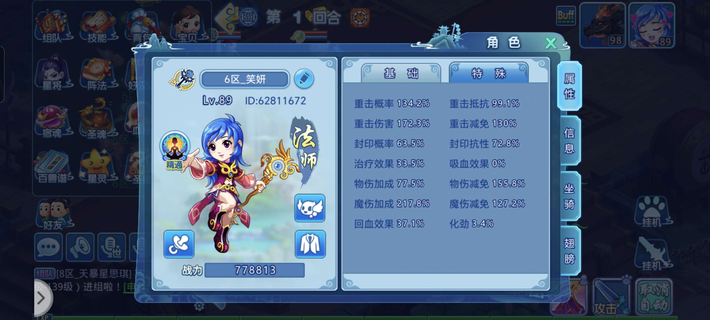89级77W战力法师号,带两个成品宠物和成品宝贝