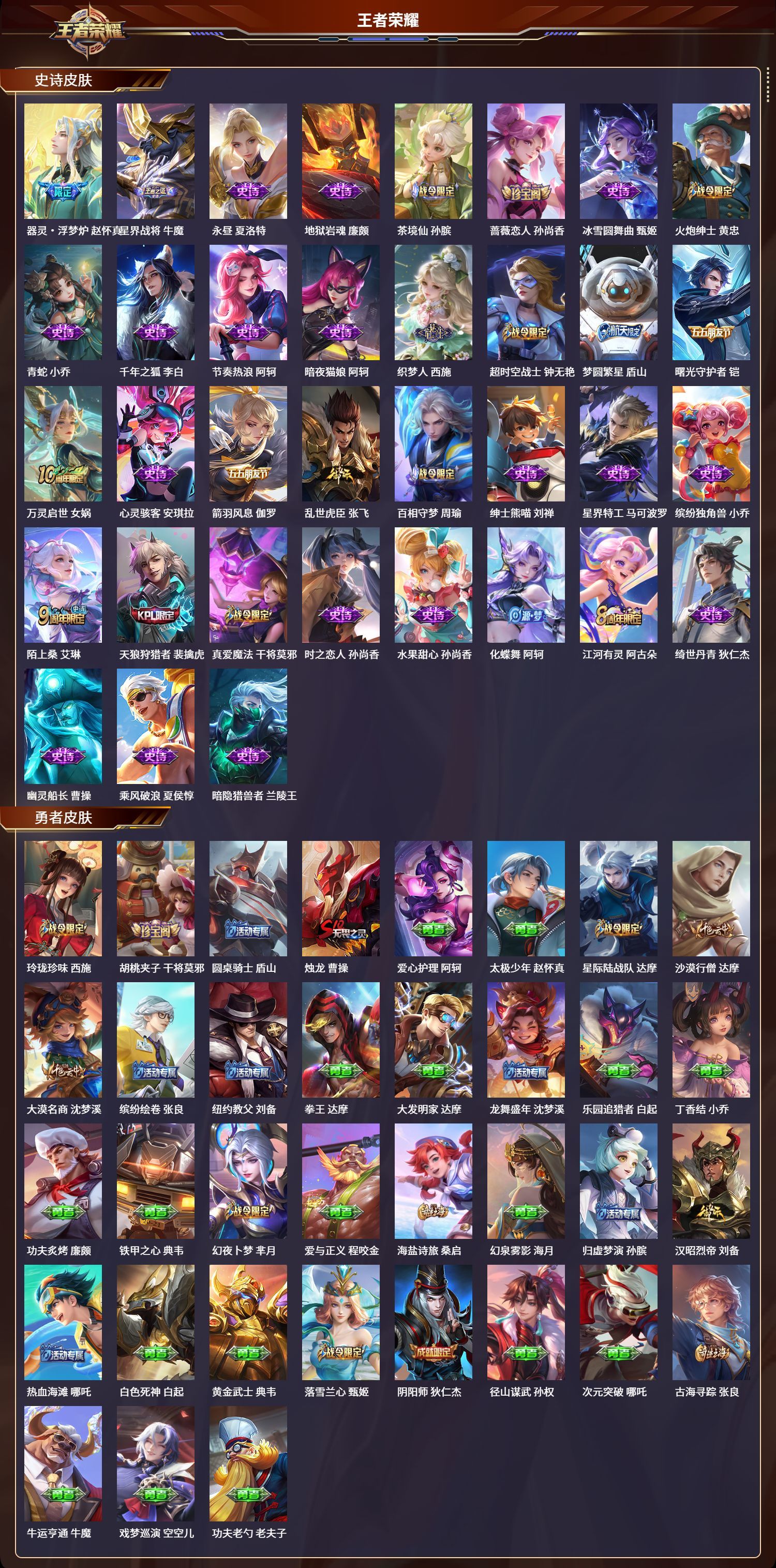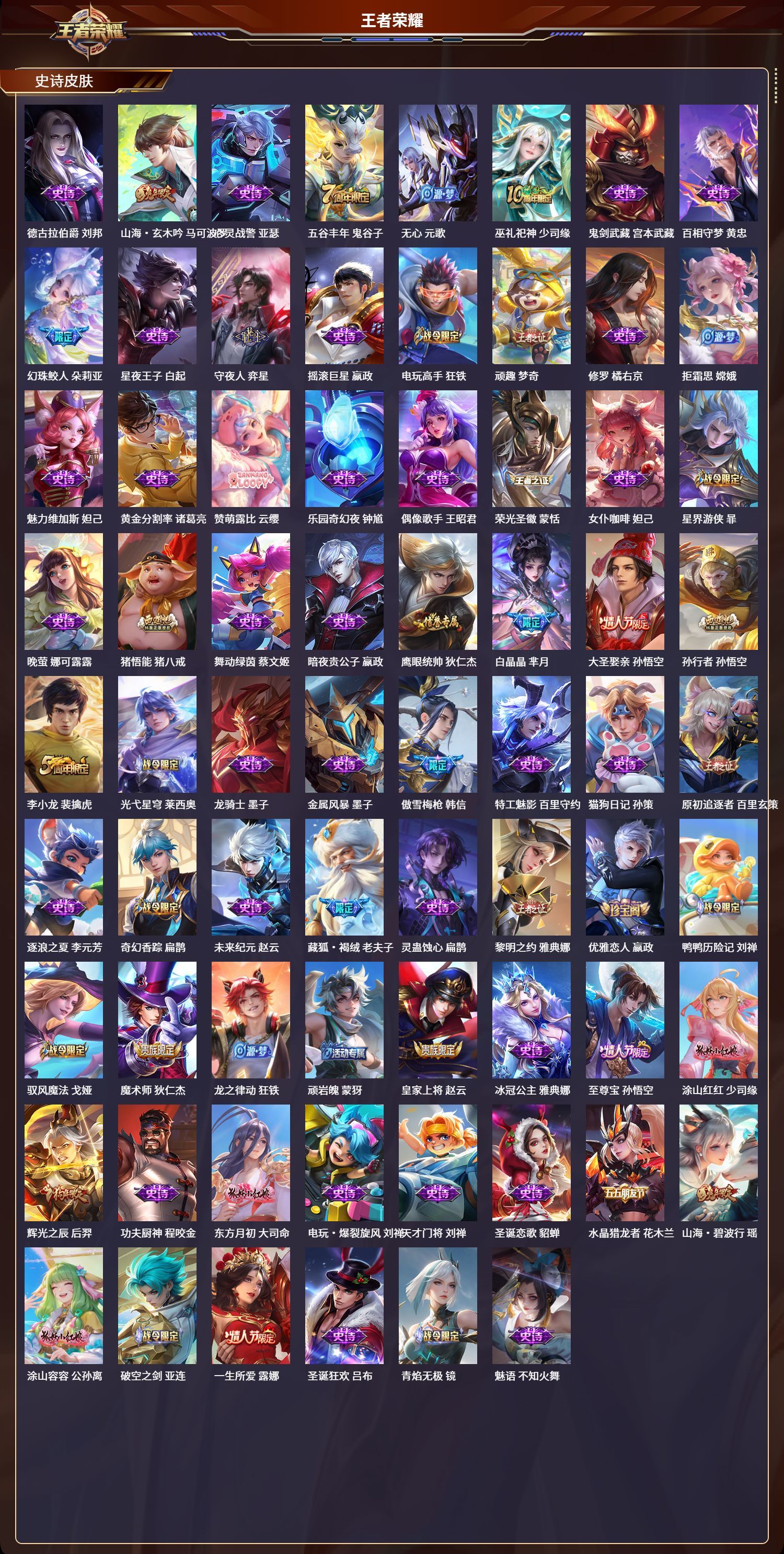 【贵族10】404皮肤/124英雄/2典藏/4无双/5珍品传说/46传说/118史诗/8稀有英雄
