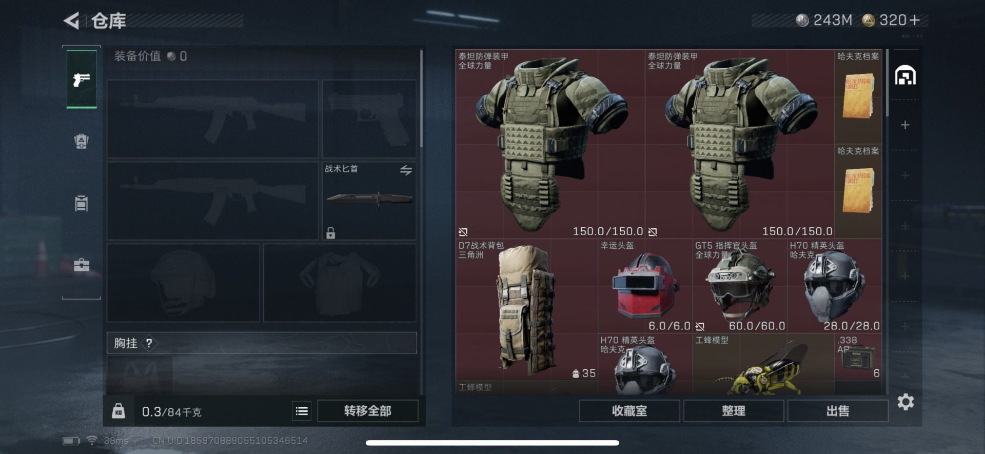 总资产:284.2M 2干员外观 8传说枪械 哈夫币:243K 可二次 可修改实名