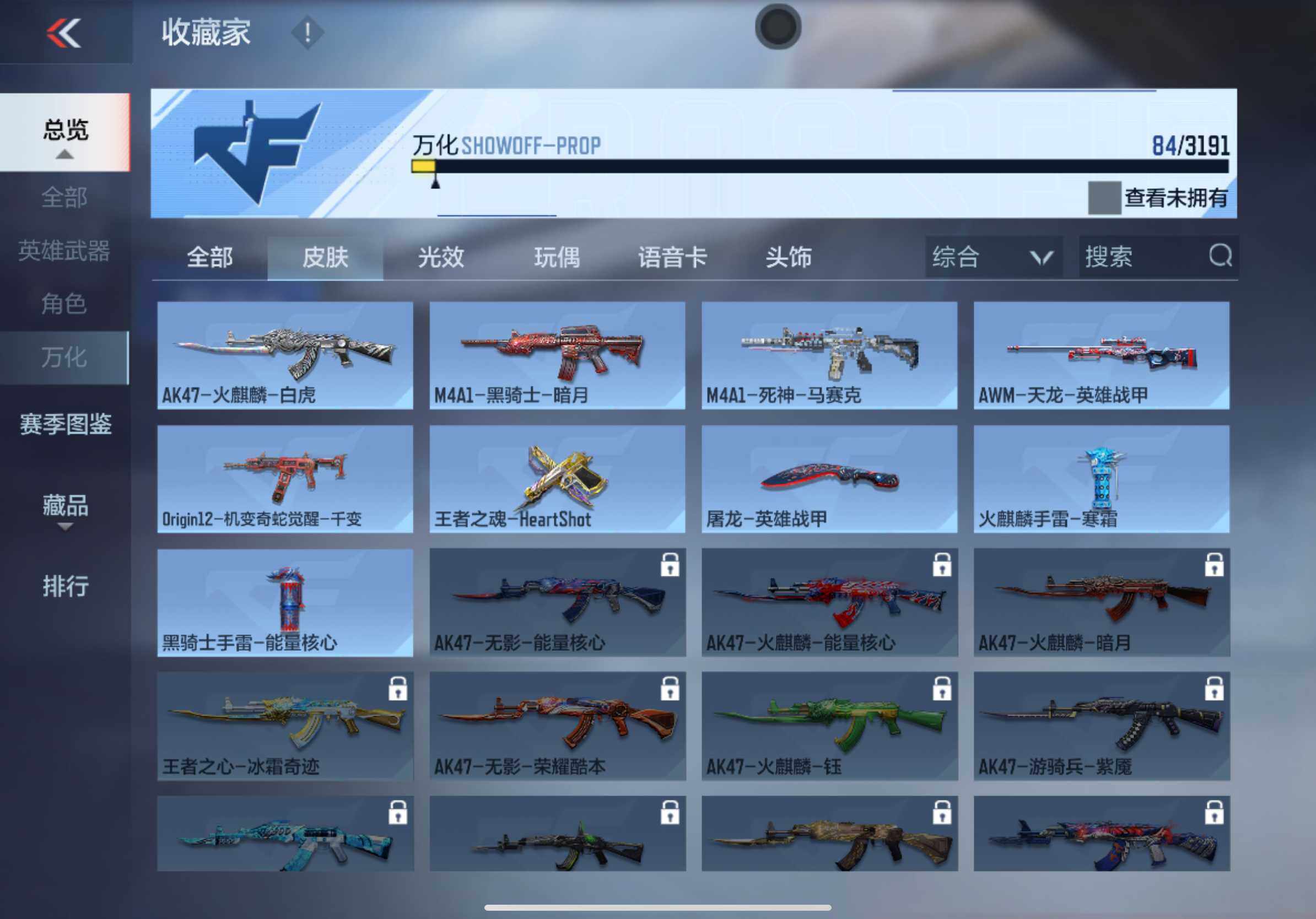 V3/1王者/88英雄/王者之影/AK雷暴/QBZ帝皇铠甲/AK天启/AWM天