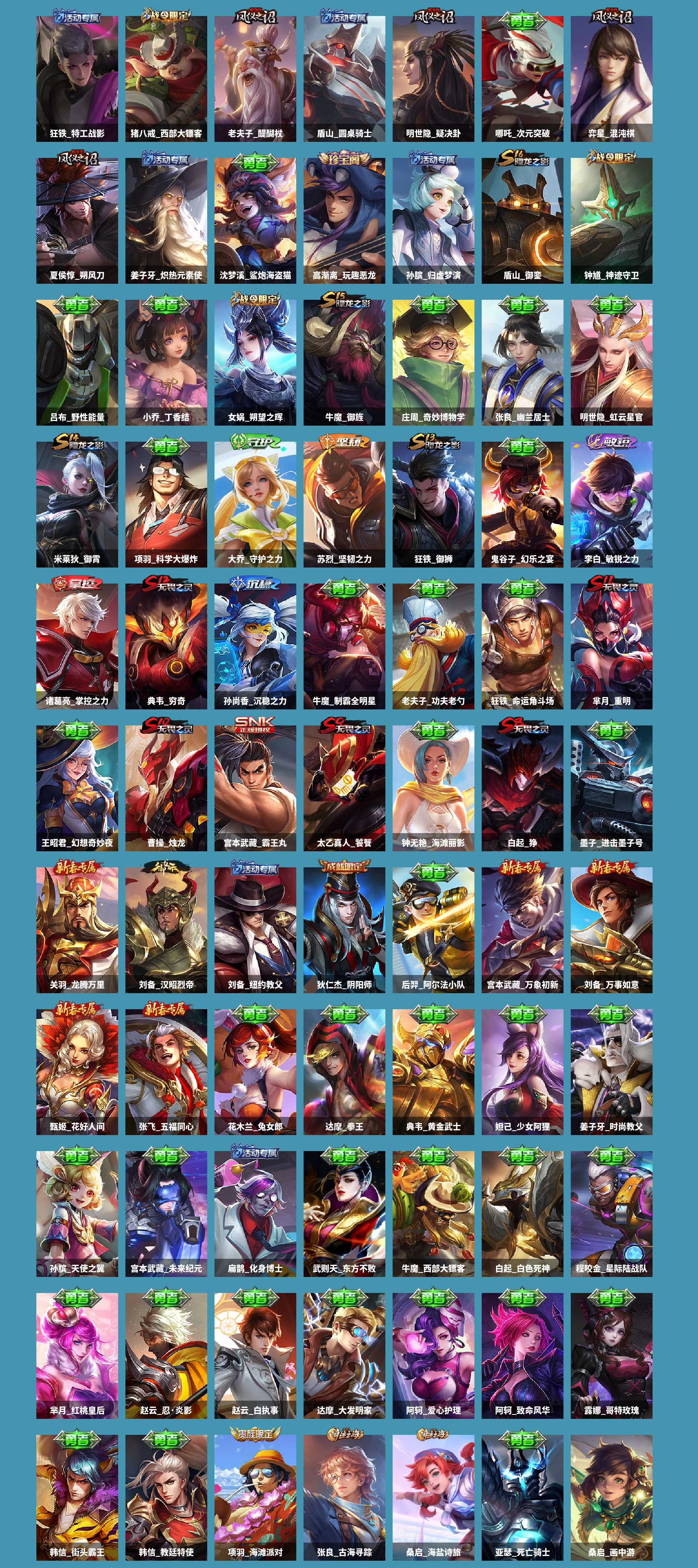 3金标/韩信典藏/补天/愿照妲己皮肤数量320印记总数25典