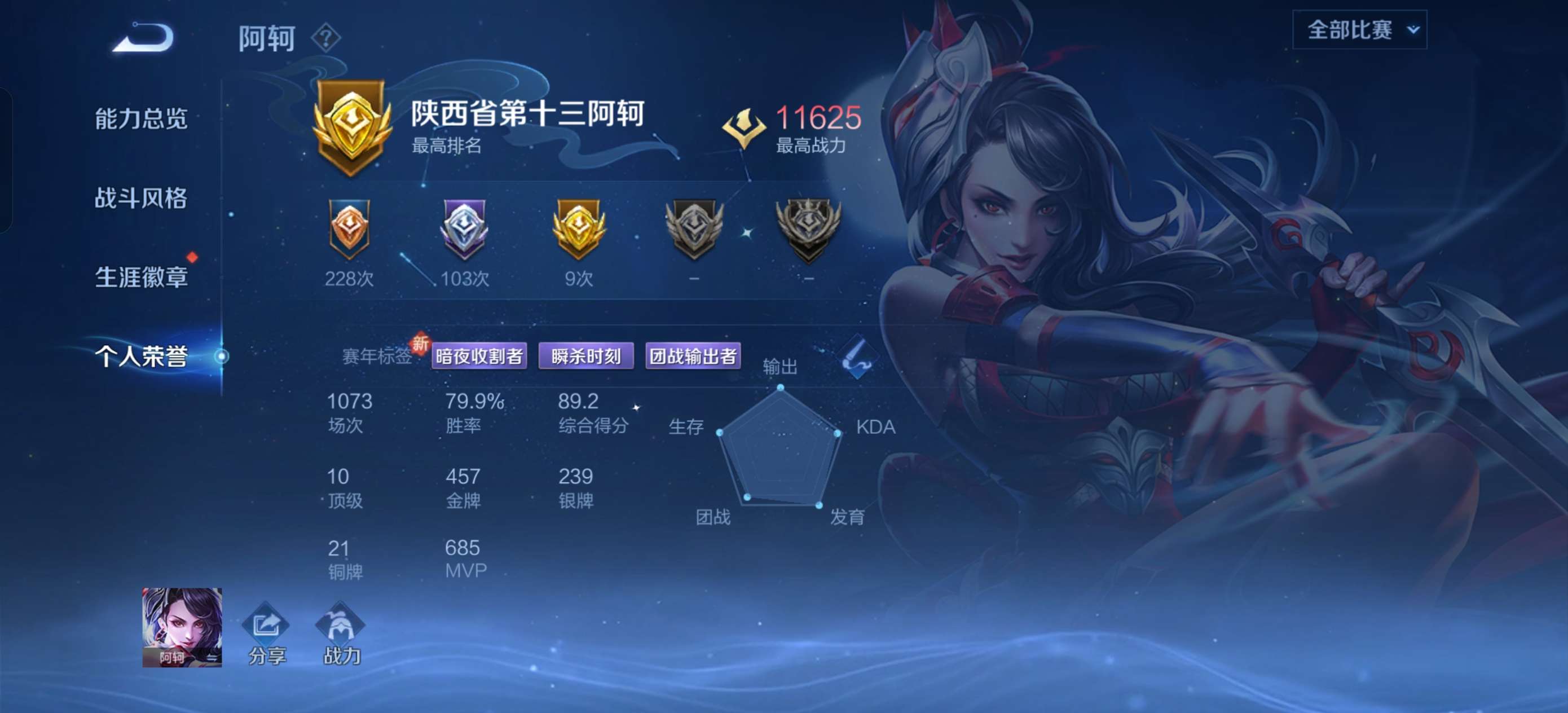 安卓QQ-2传说-88皮肤-91英雄-最强王者-1073把阿轲80胜率90评分账号,历史传奇印记