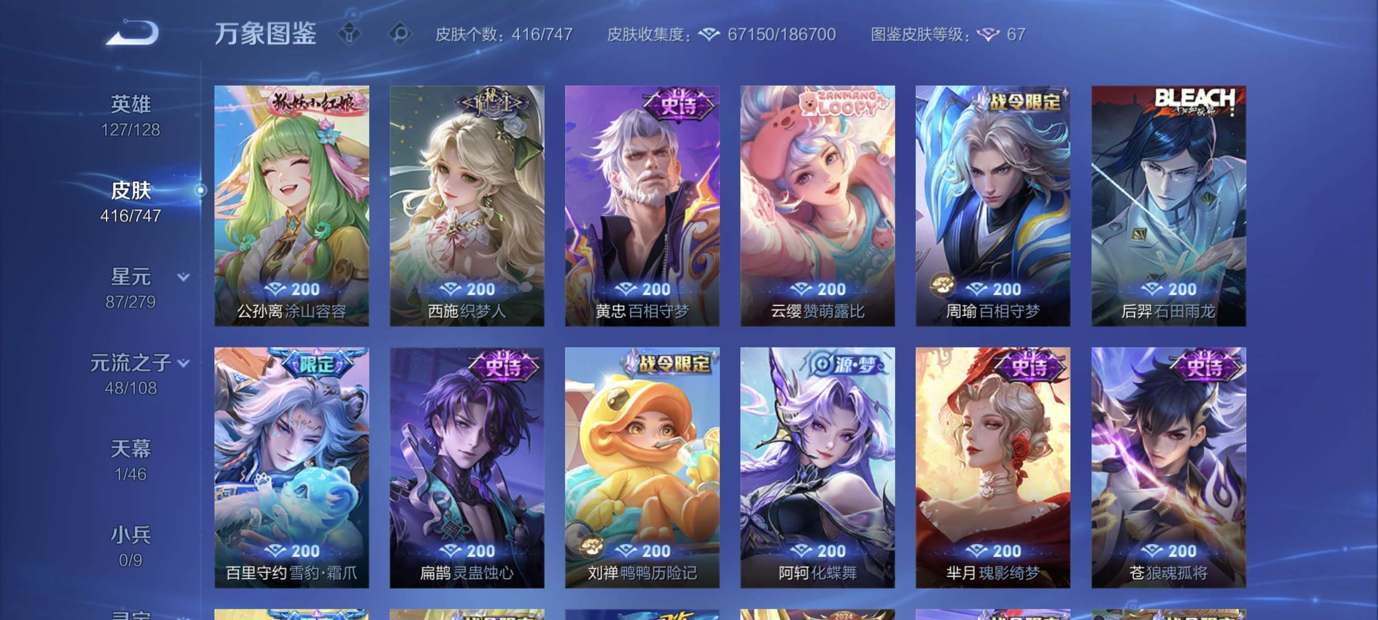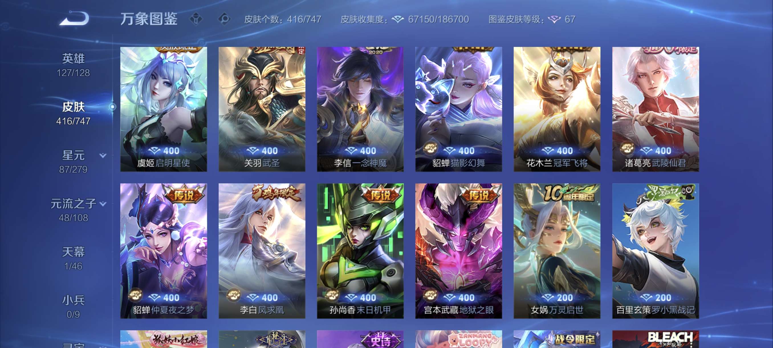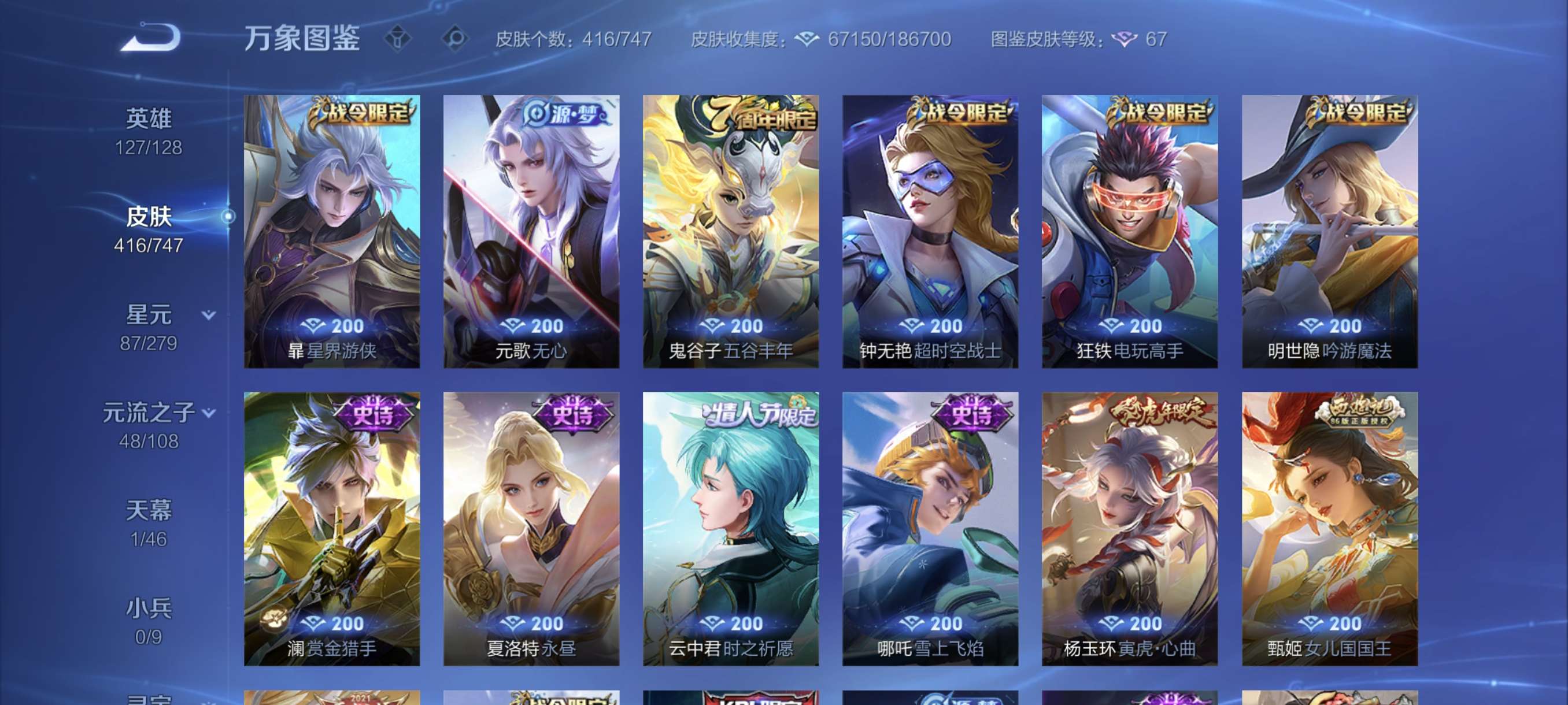 413皮三典藏四珍品,万战花木兰,花木兰和孙尚香都是金标,排位现在马上荣耀王者了,喜欢的不要错过。