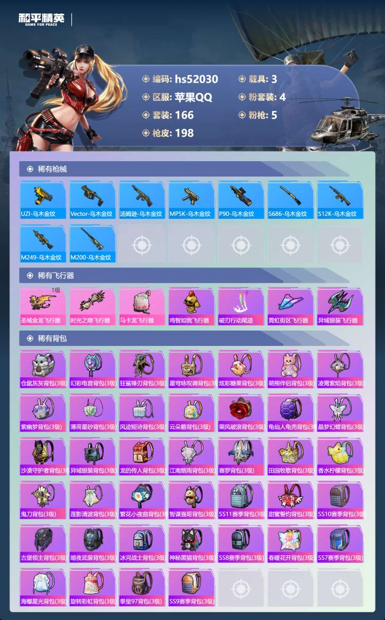 hs52030 苹果手Q-8王牌印记-有战神框-4粉装-5特效枪-3载具