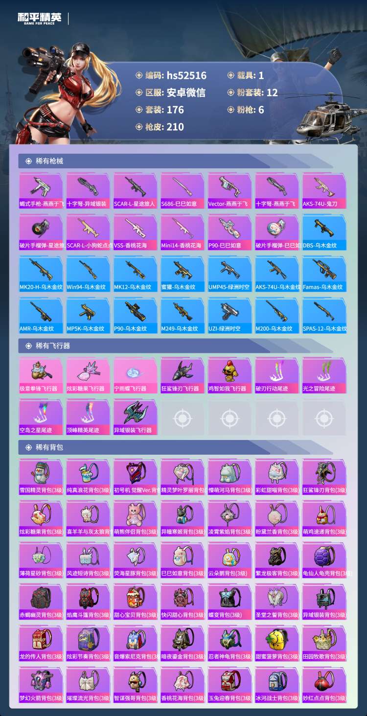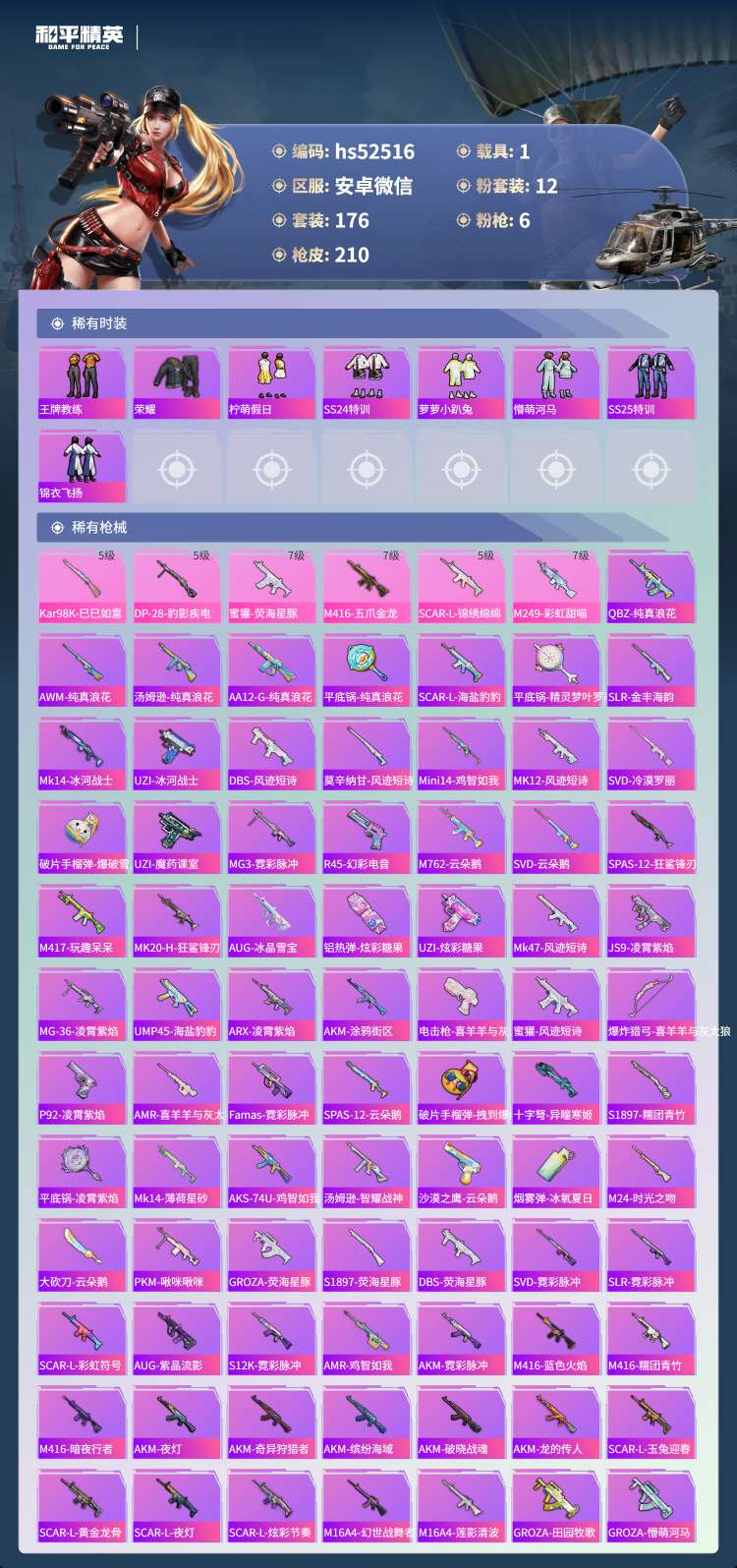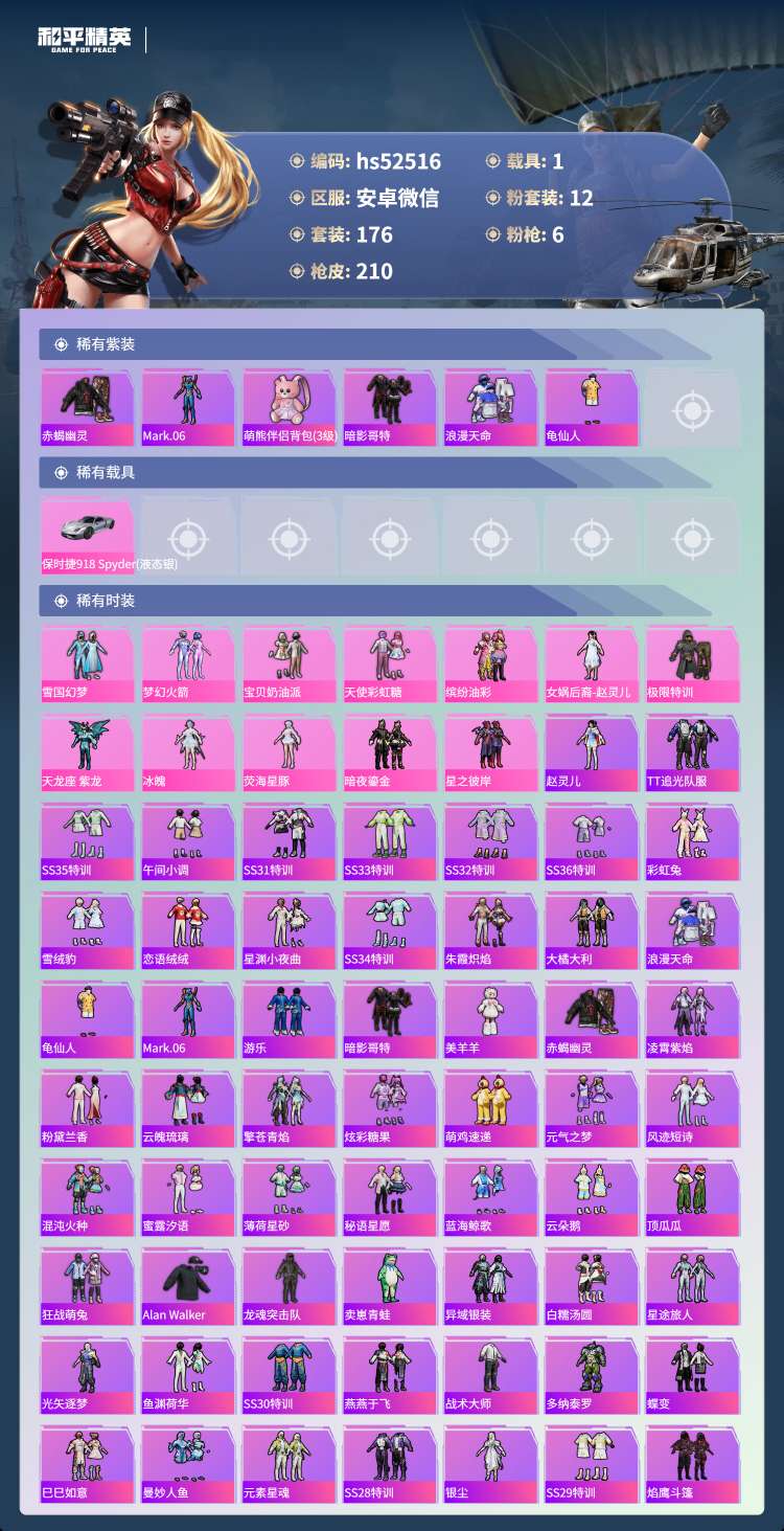 hs52516 安卓v-13王牌印记-12粉装-6特效枪-1载具