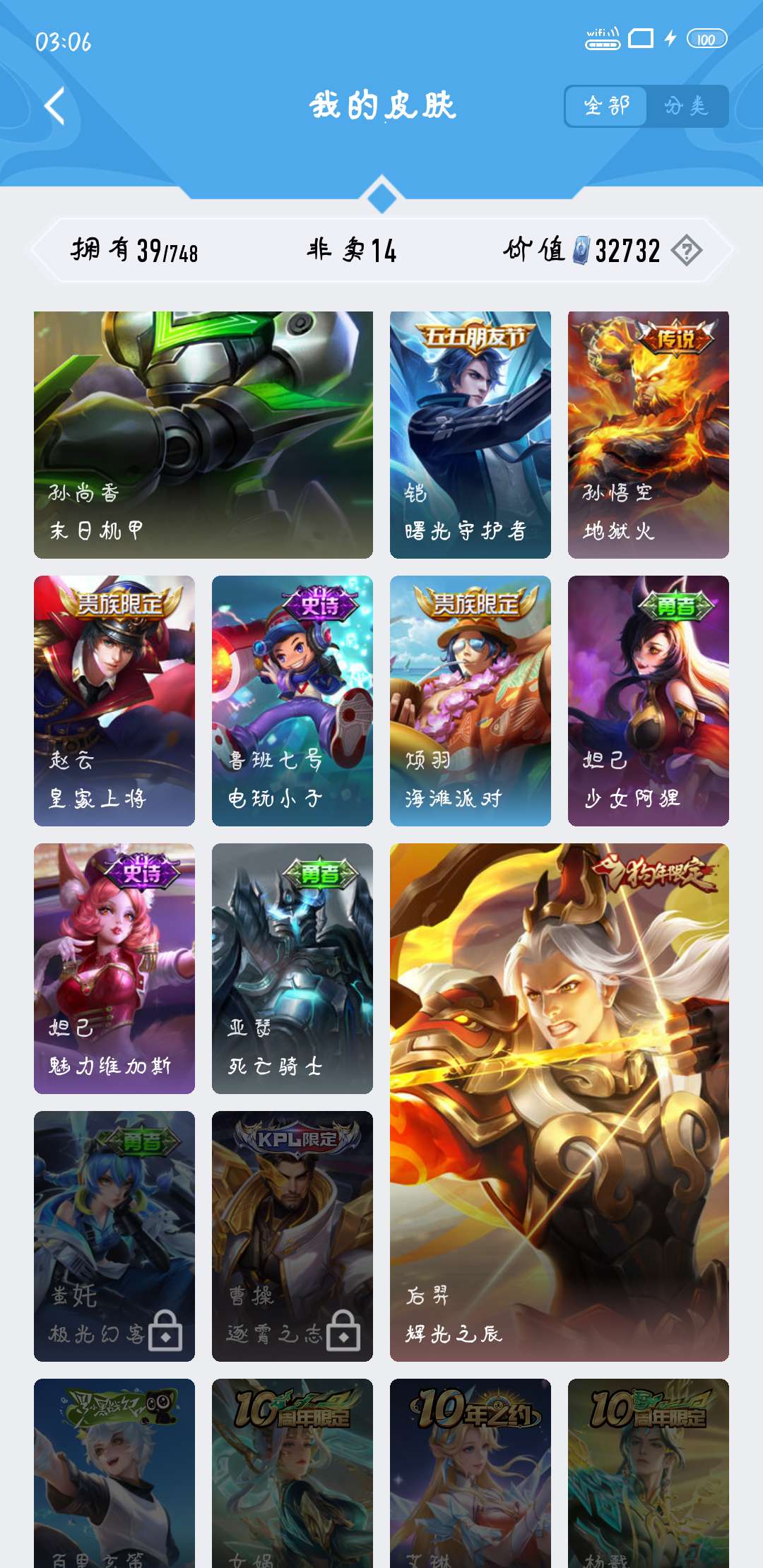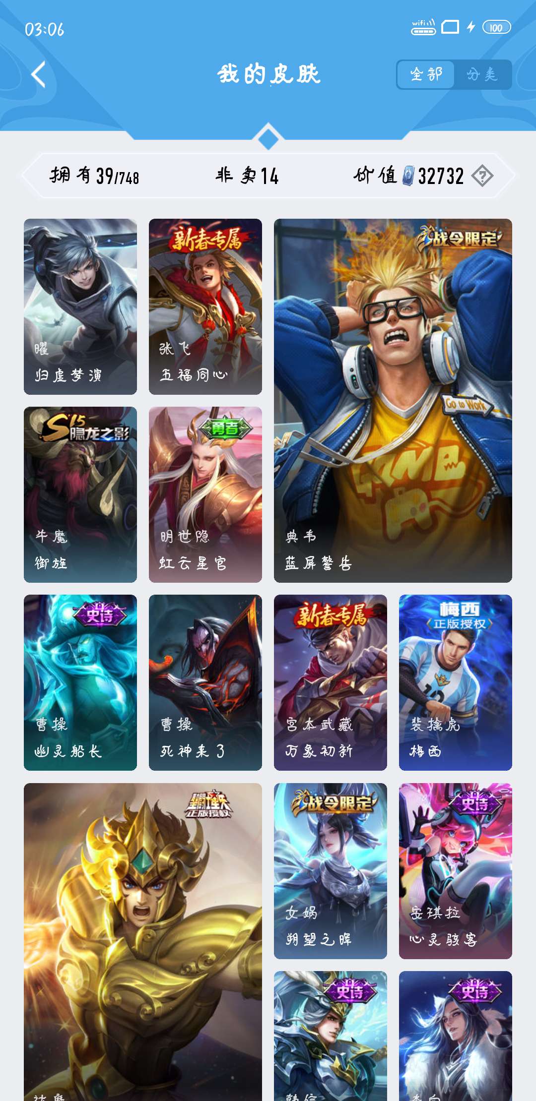 4王者+孤狼。王者荣耀限定皮肤,梅西,狮子座,瑞麟志,大圣娶亲,末日机甲,地狱火,辉光之辰。可小刀