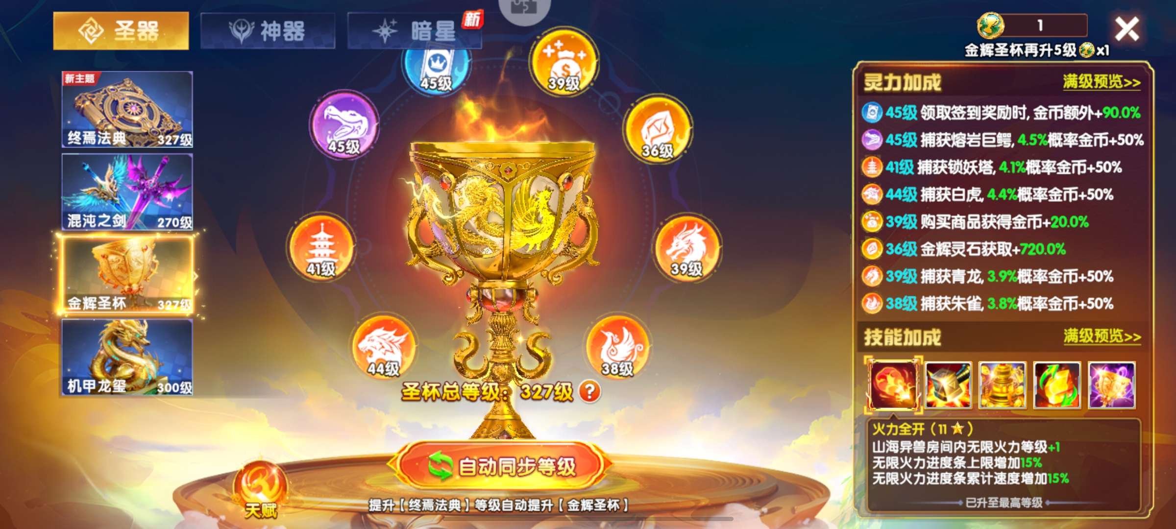 圣器打满12套,带400兆金币
