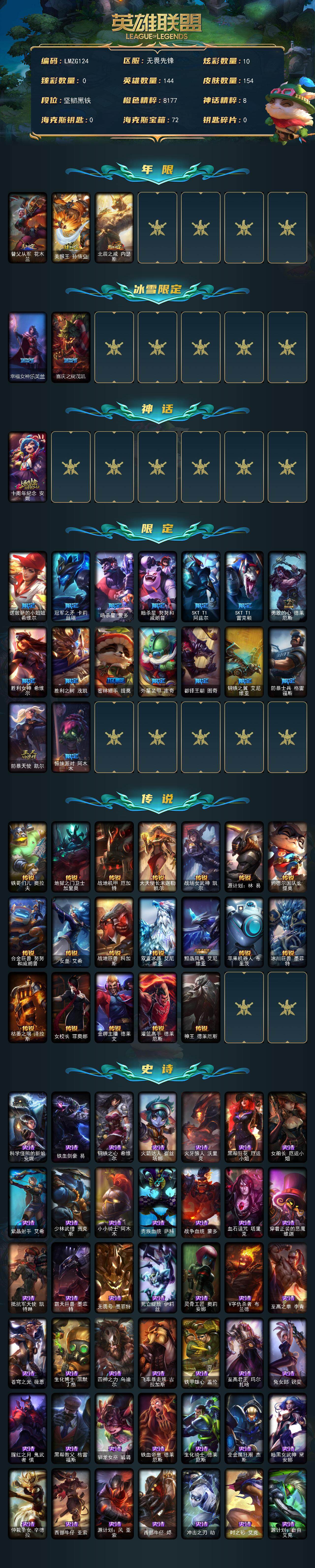 144英雄/154皮肤/1神话/21限定/10炫彩
