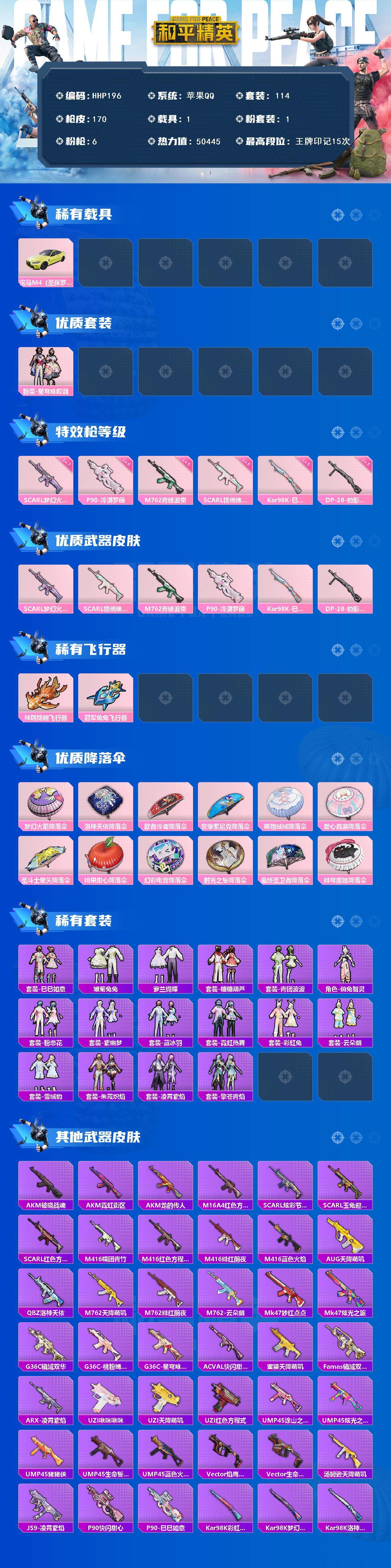 iOS 绝世印记 宝马M4(圣保罗黄)SCAR-L-梦幻火箭(七级) -1粉装-6特效枪-1载具-3粉色飞行器-50445热力值-15王牌印记-114套装-170枪皮