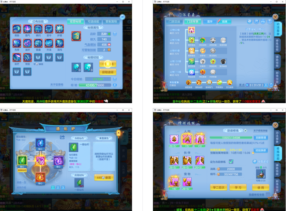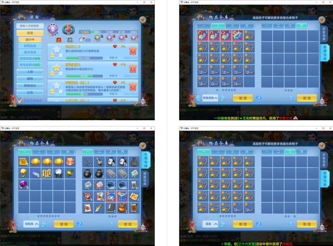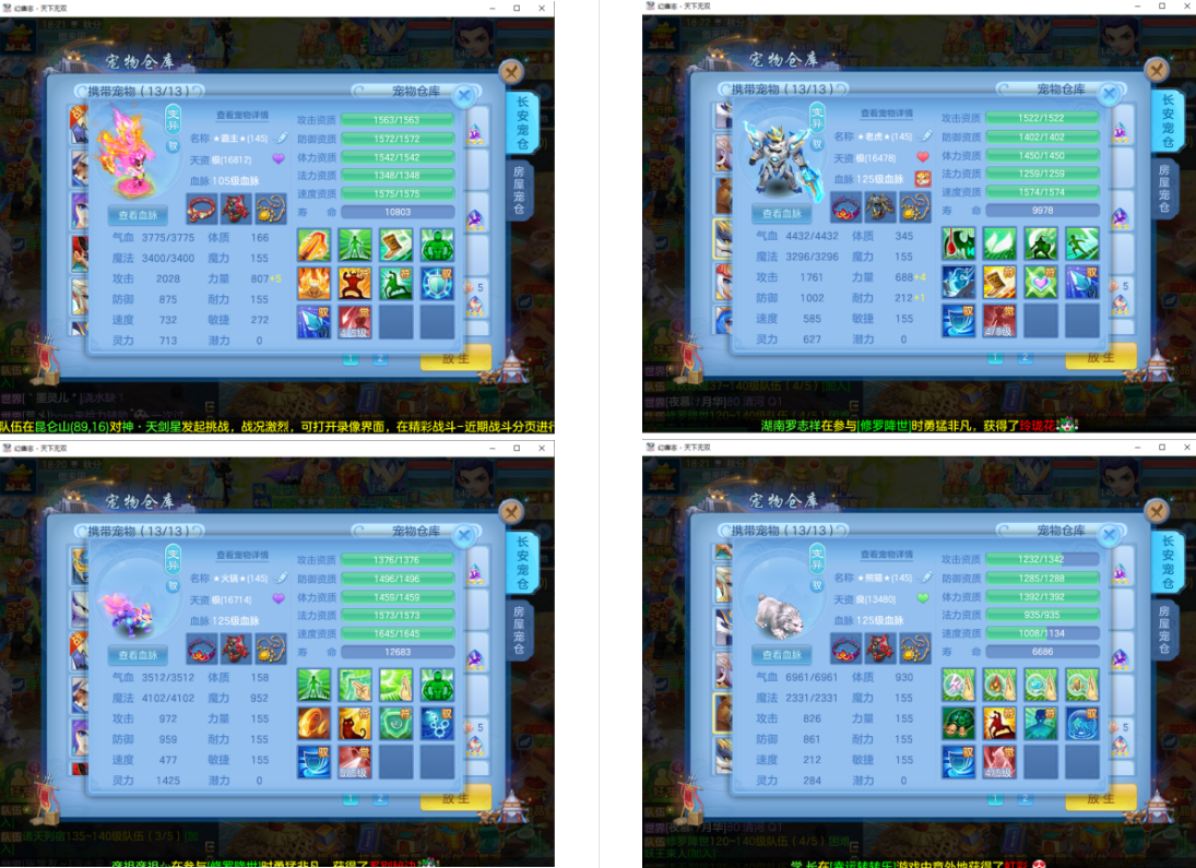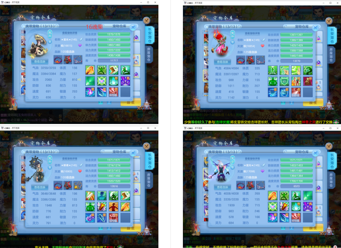 4套属性-1件14段3件13段2件12段,神器腰带,10个6技能多特殊5(6满魂兽),8红10黄血脉,3专属血脉,12个宝宝皮肤,高级坐骑+海景房,520万银子,仓库还有神兽内丹,3366成就