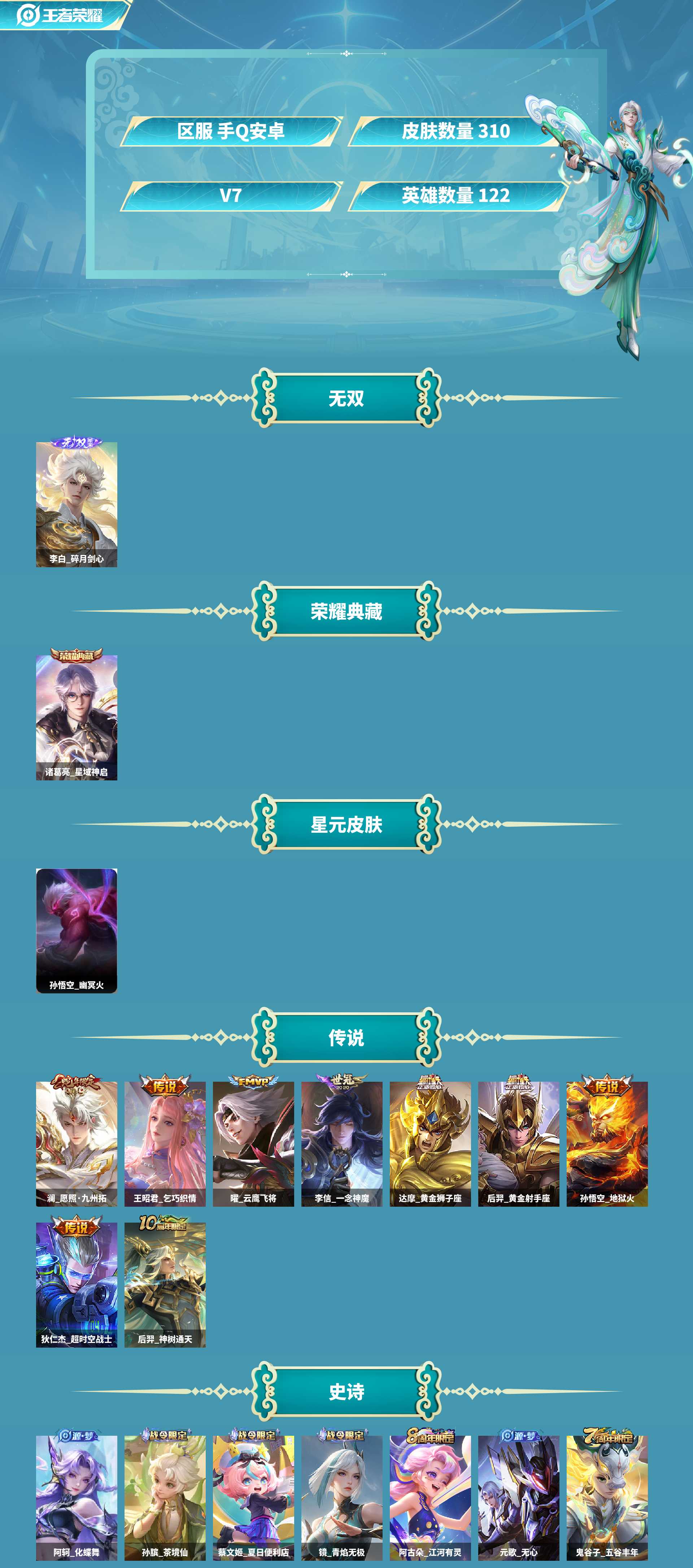 李白无双/诸葛典藏皮肤数量309印记总数14典藏皮肤数量1传