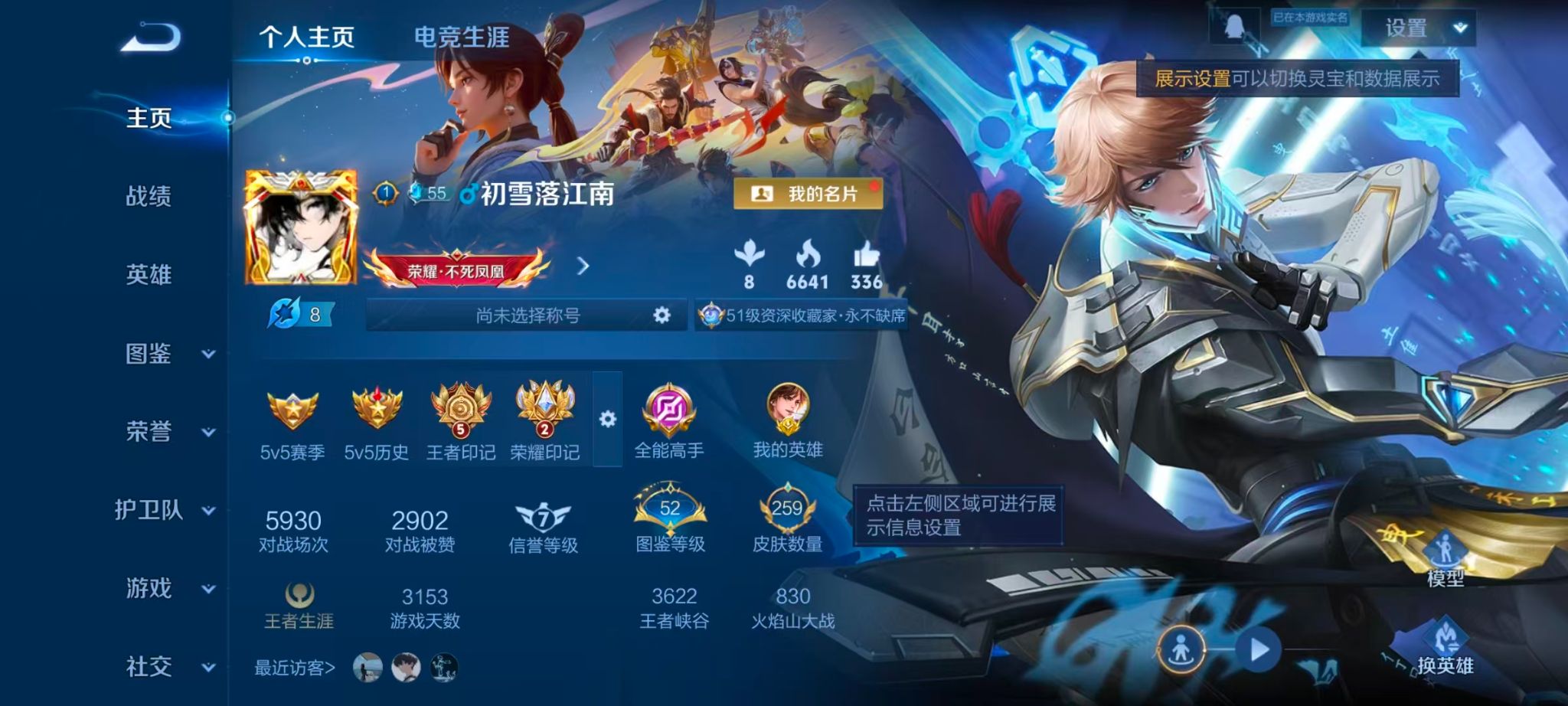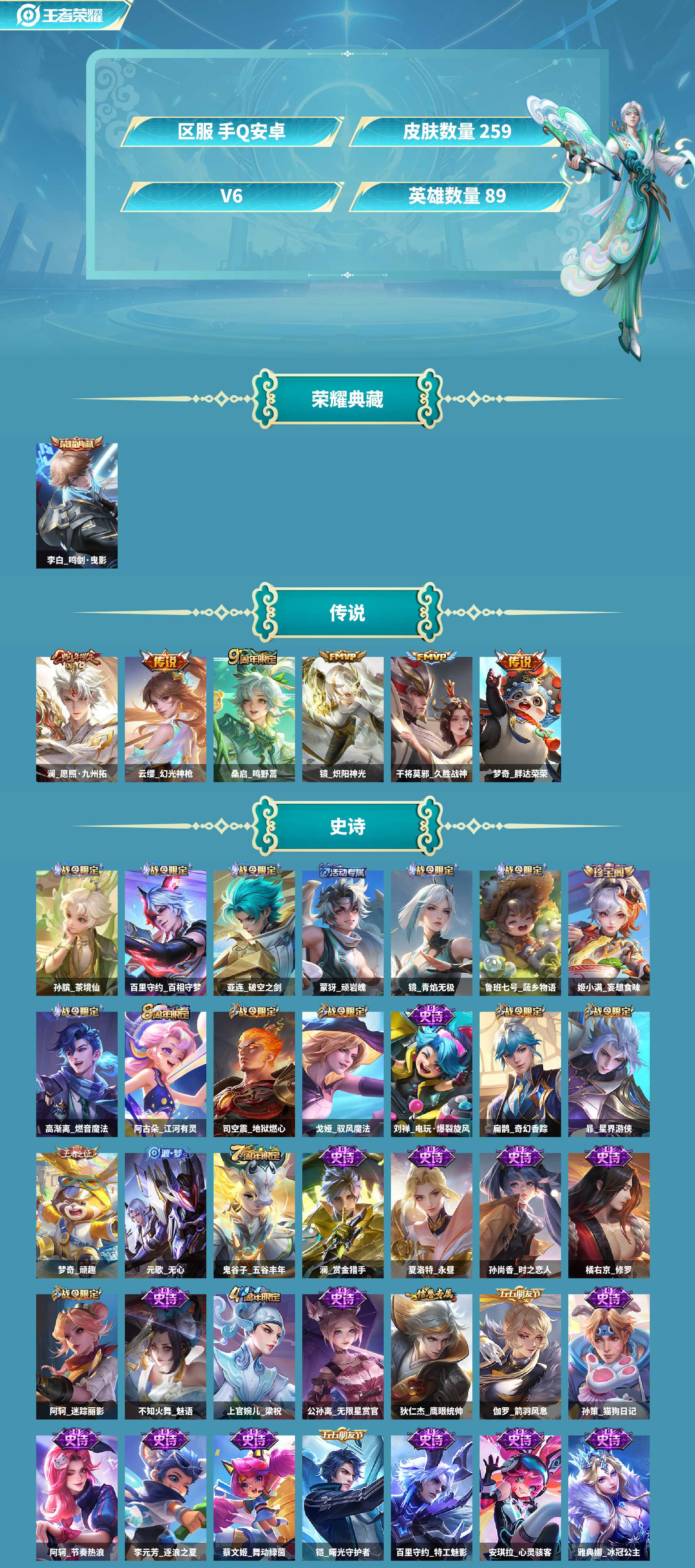 小打野!8k金标典藏李白+愿照澜皮肤数量259印记总数7典藏