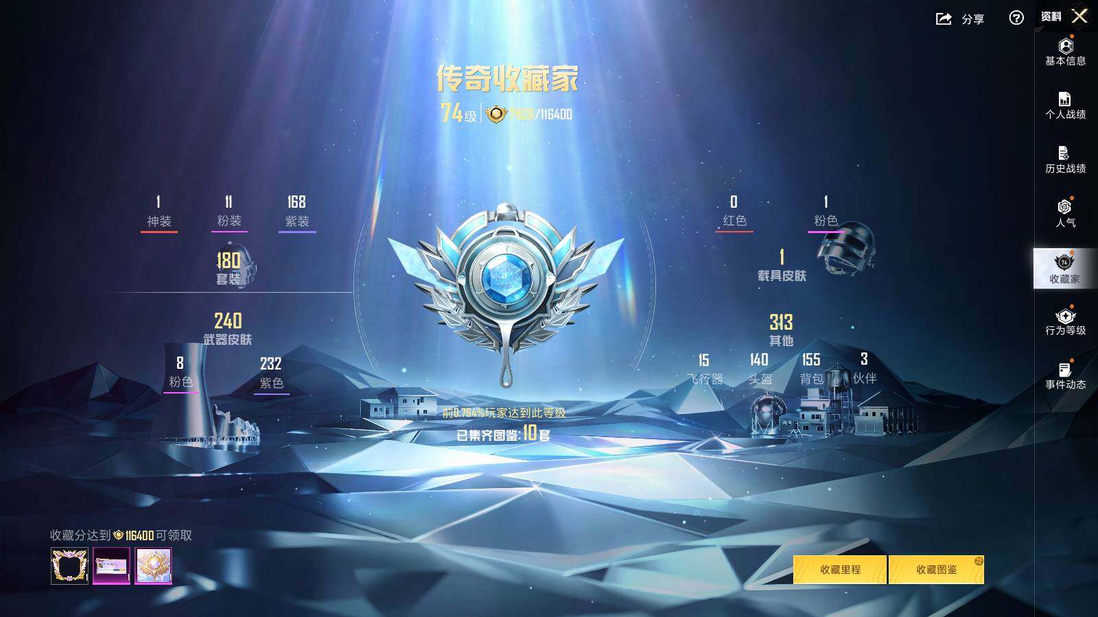 苹果 手Q-1神装-11粉装-8特效枪-1载具-8粉色飞行器