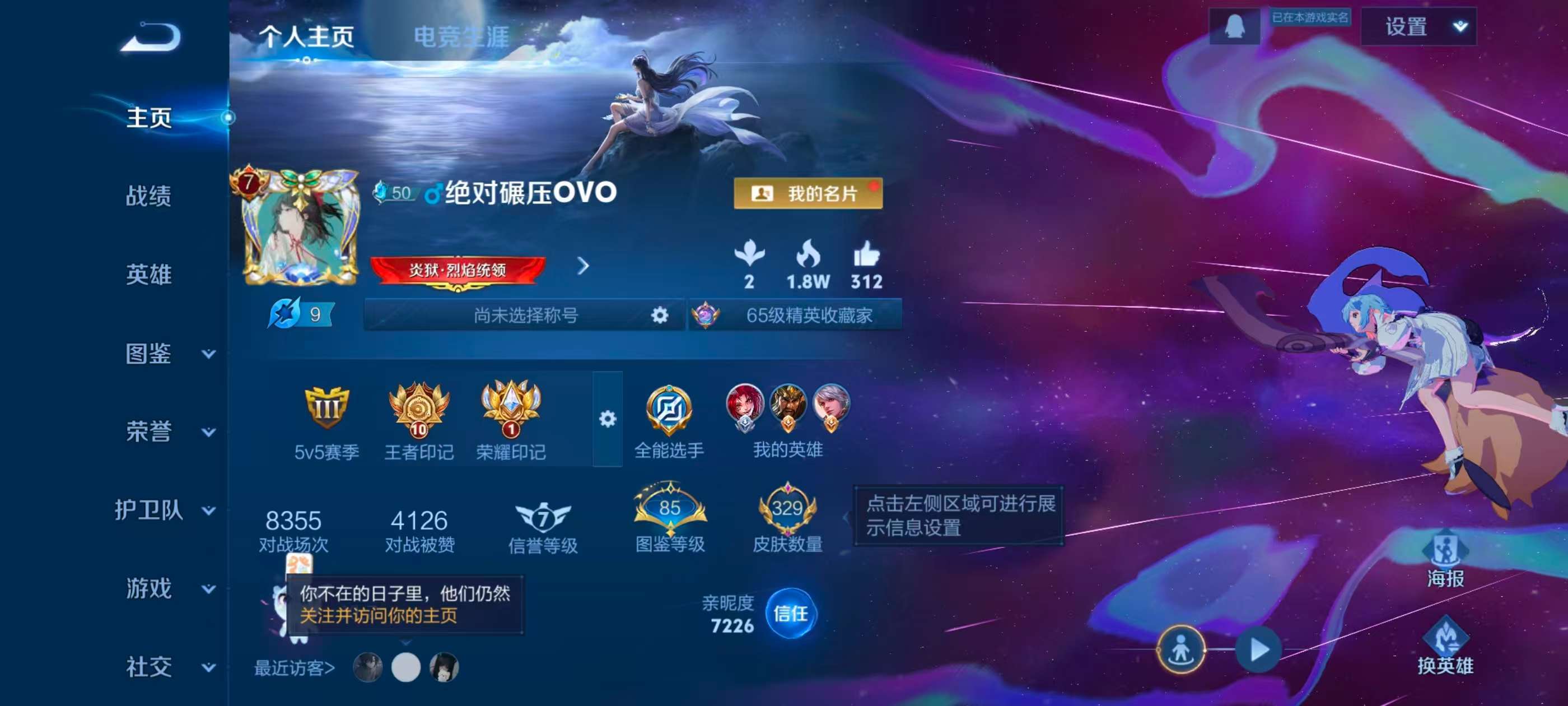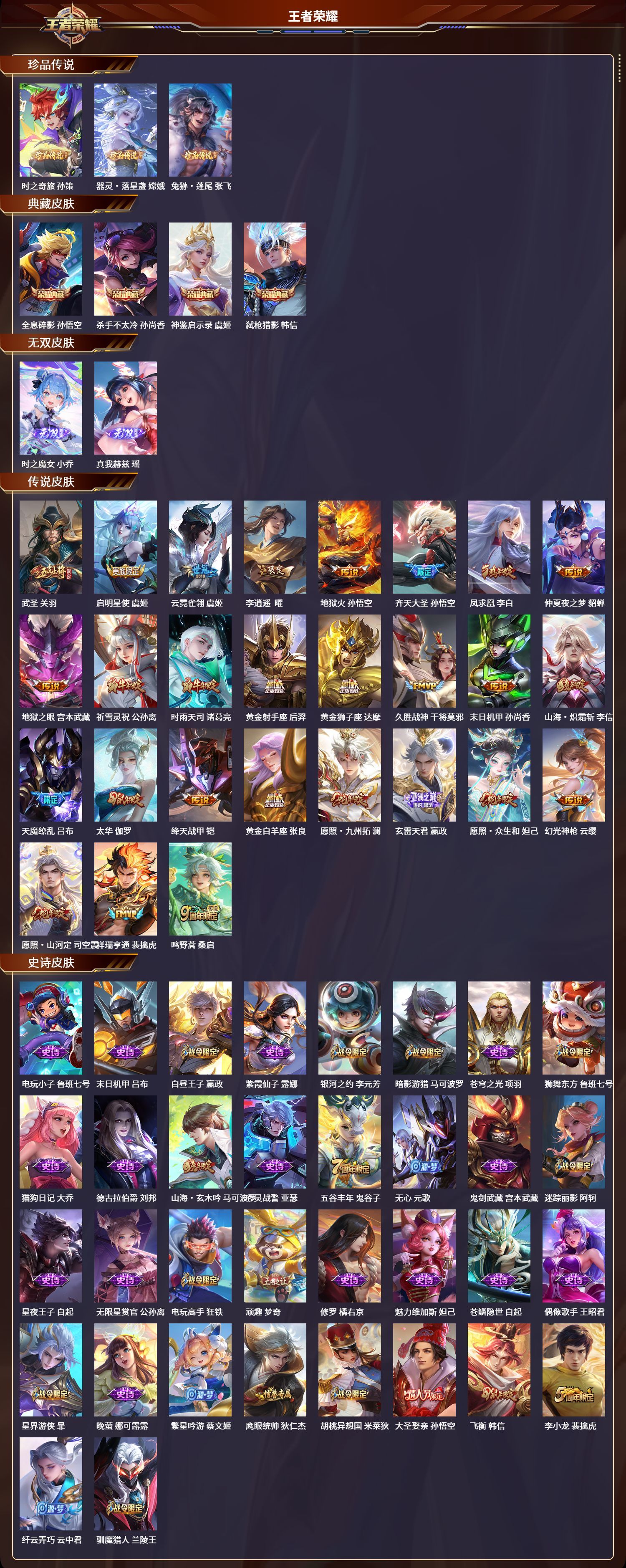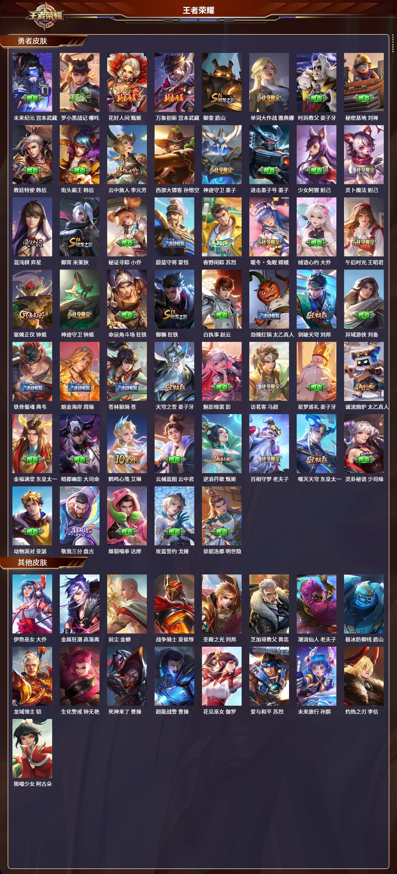 安卓QQ/至尊星耀/329皮肤/125英雄/4典藏/0珍品无双/2无双/3珍品传说/27传说/88史