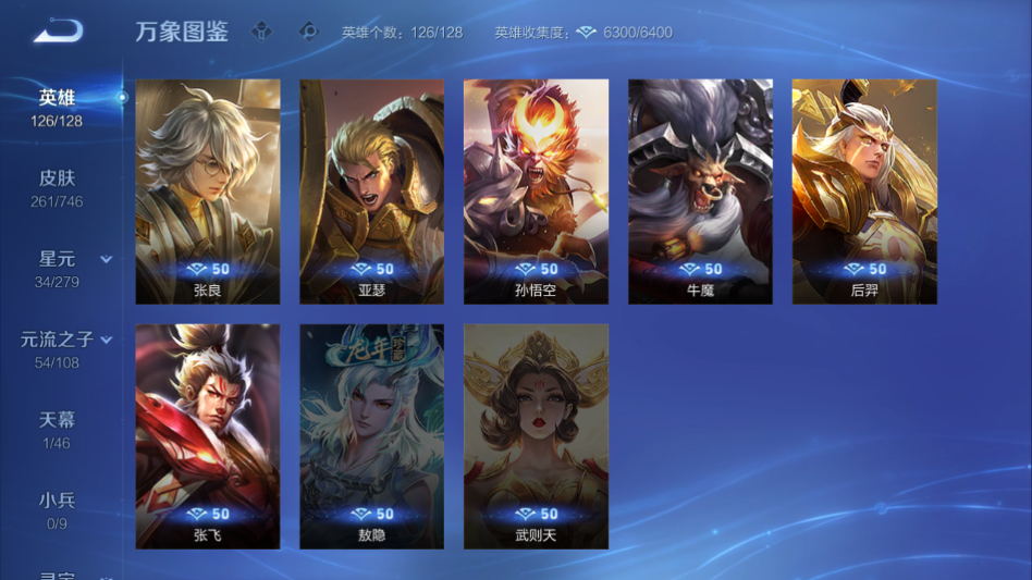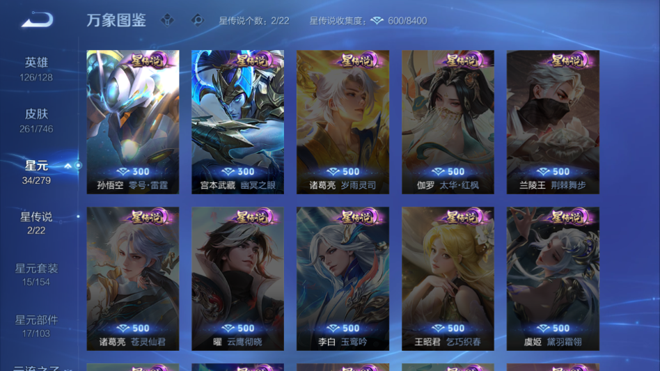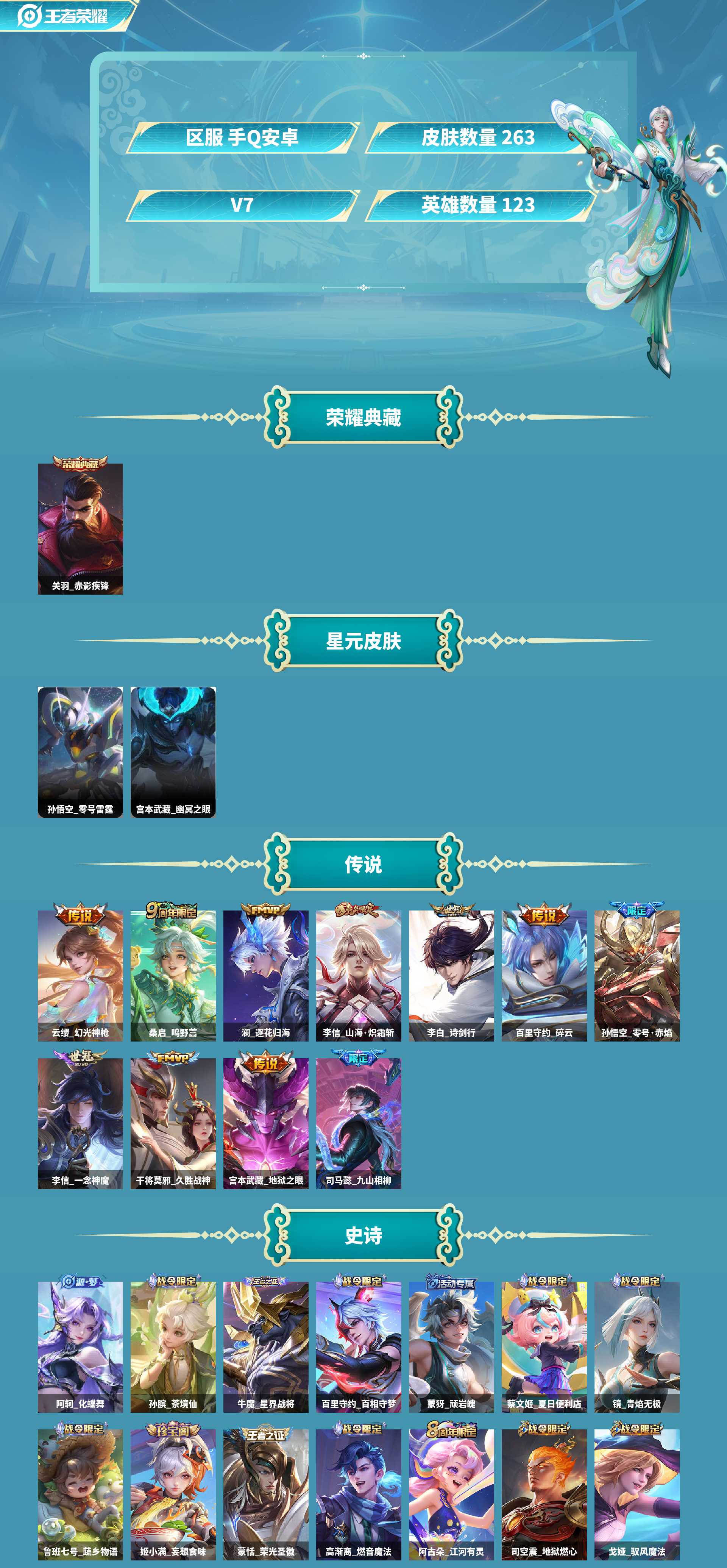 关羽典藏+相柳+诗剑行皮肤数量261印记总数14典藏皮肤数量