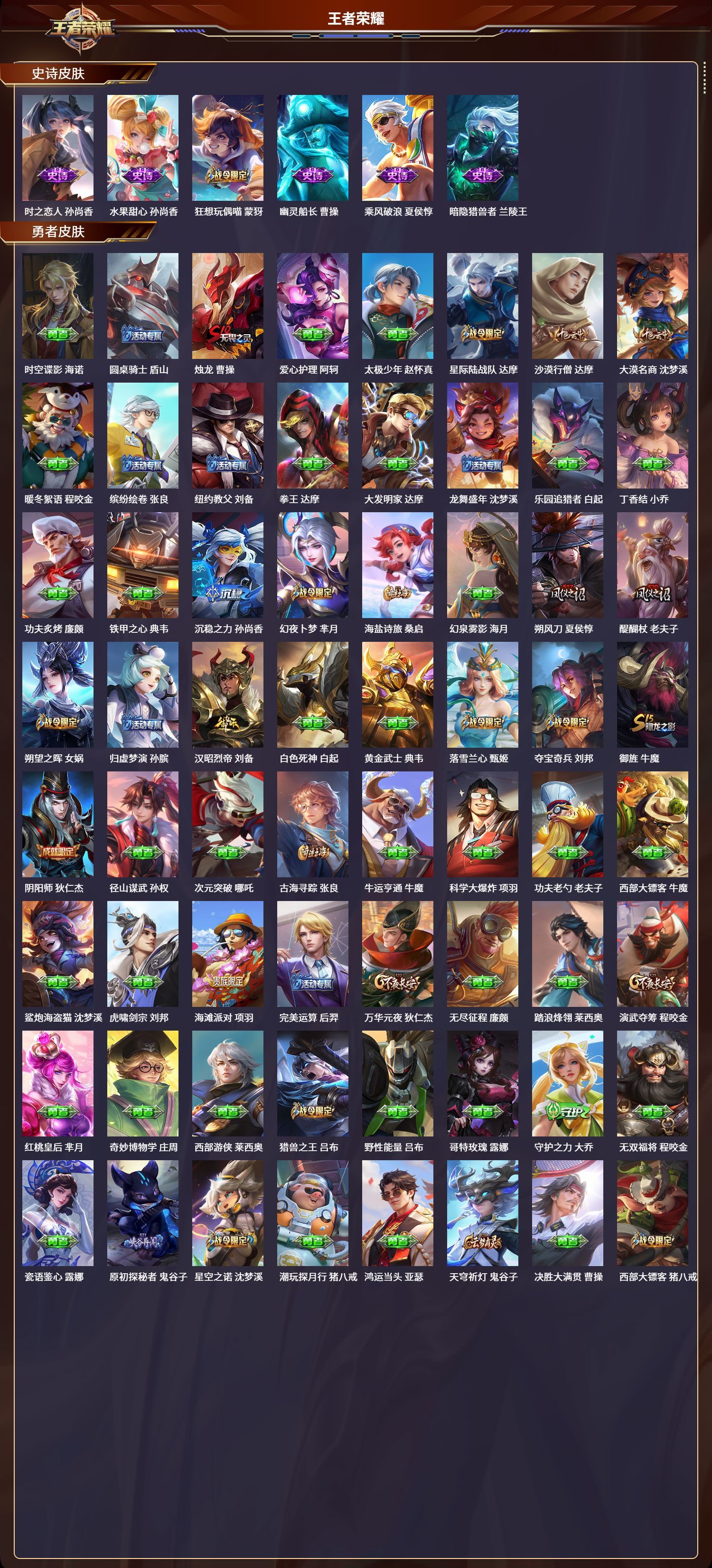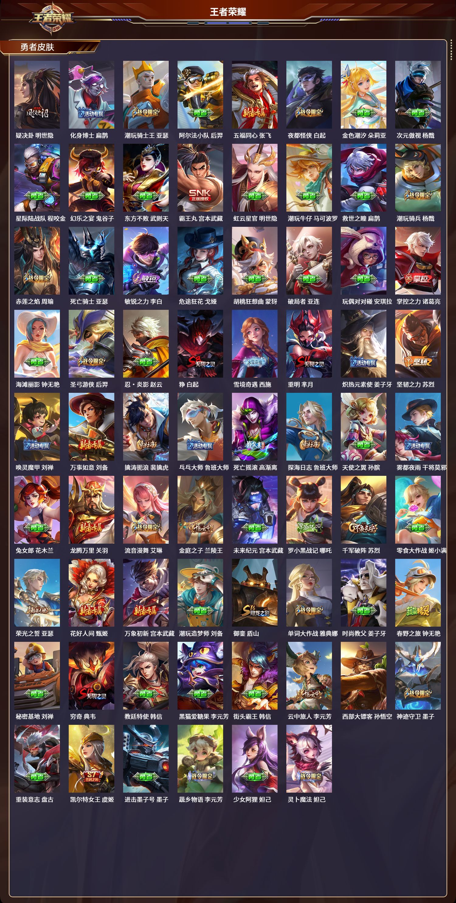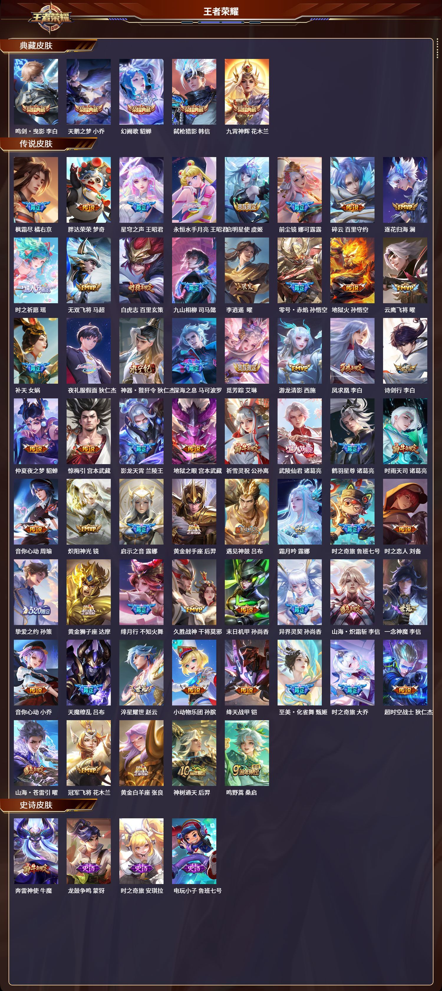 安卓QQ/至尊星耀/469皮肤/125英雄/5典藏/0珍品无双/0无双/0珍品传说/61传说/150