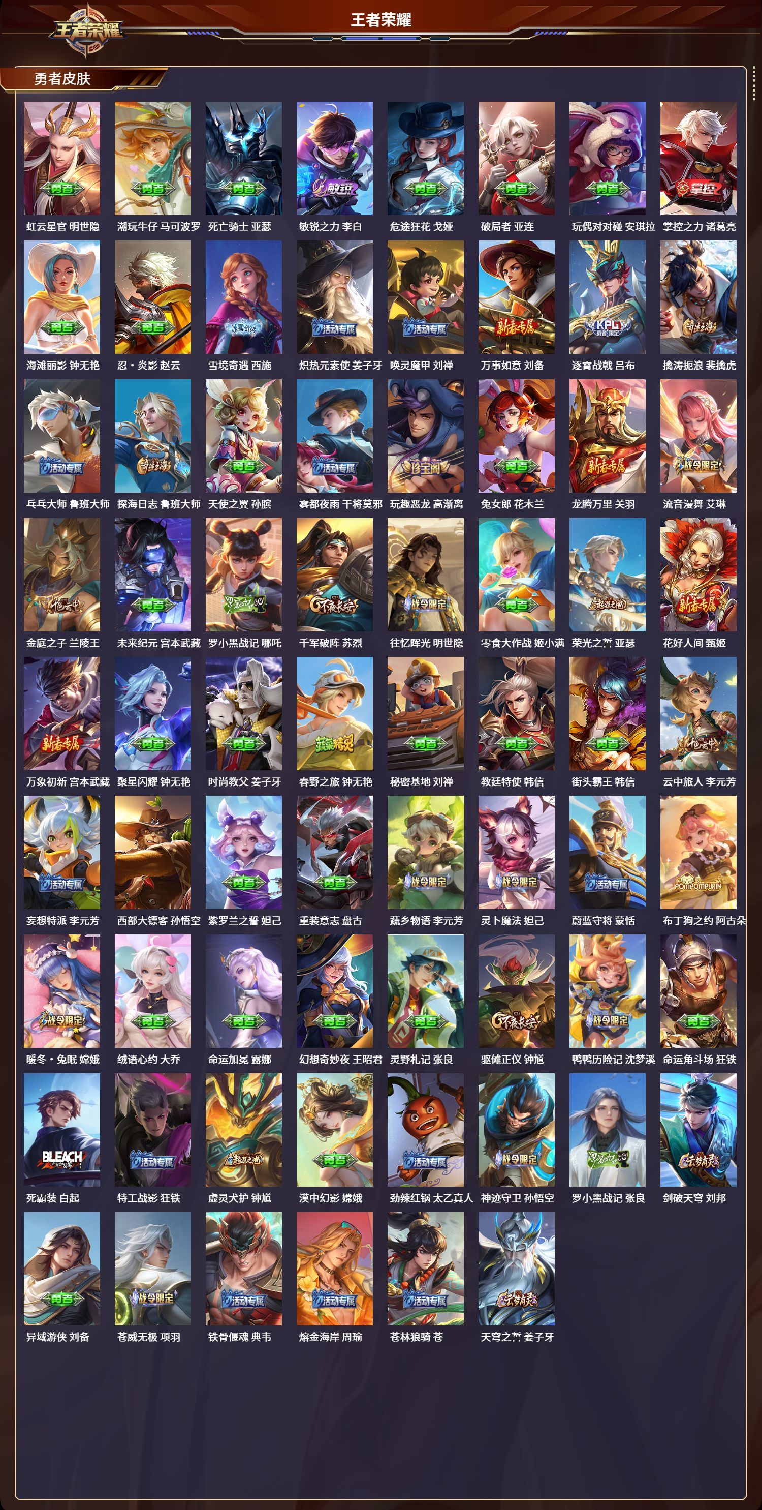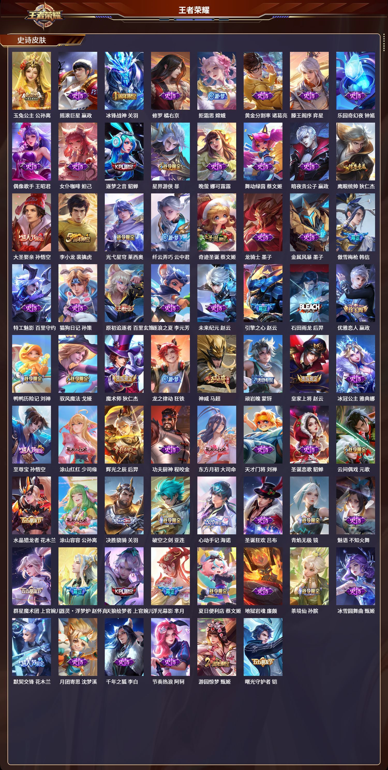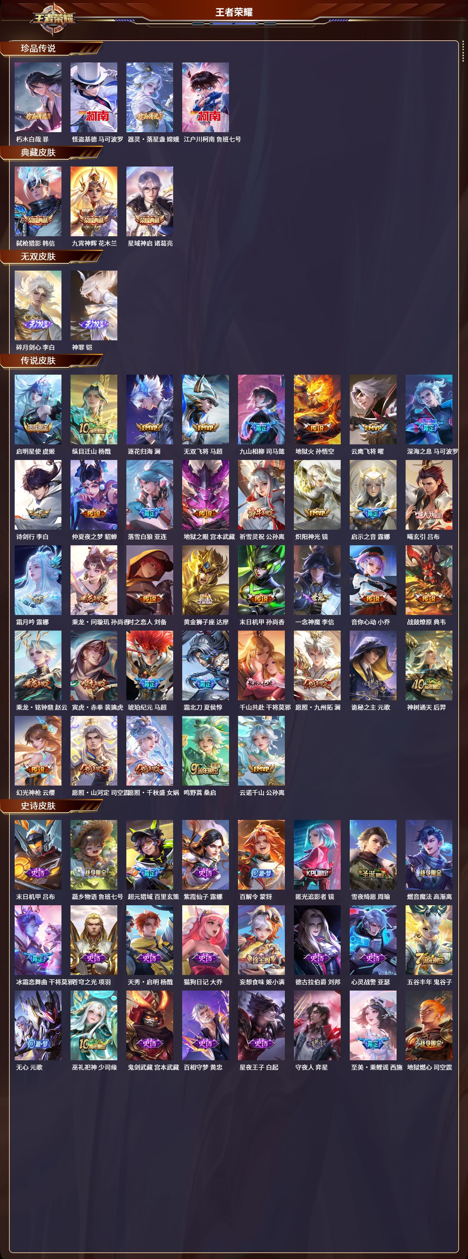 360皮肤/127英雄/3典藏/2无双/4珍品传说/37传说/112史诗/9稀有英雄