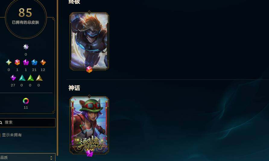 65英雄/81皮肤/1终极/1神话/20限定/11炫彩/12传说/26史诗/未定级/