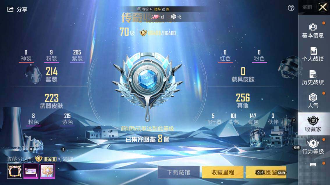 9粉装-8特效枪-0载具-2粉色飞行器-84999热力值-10王牌印记-214套装-241枪皮