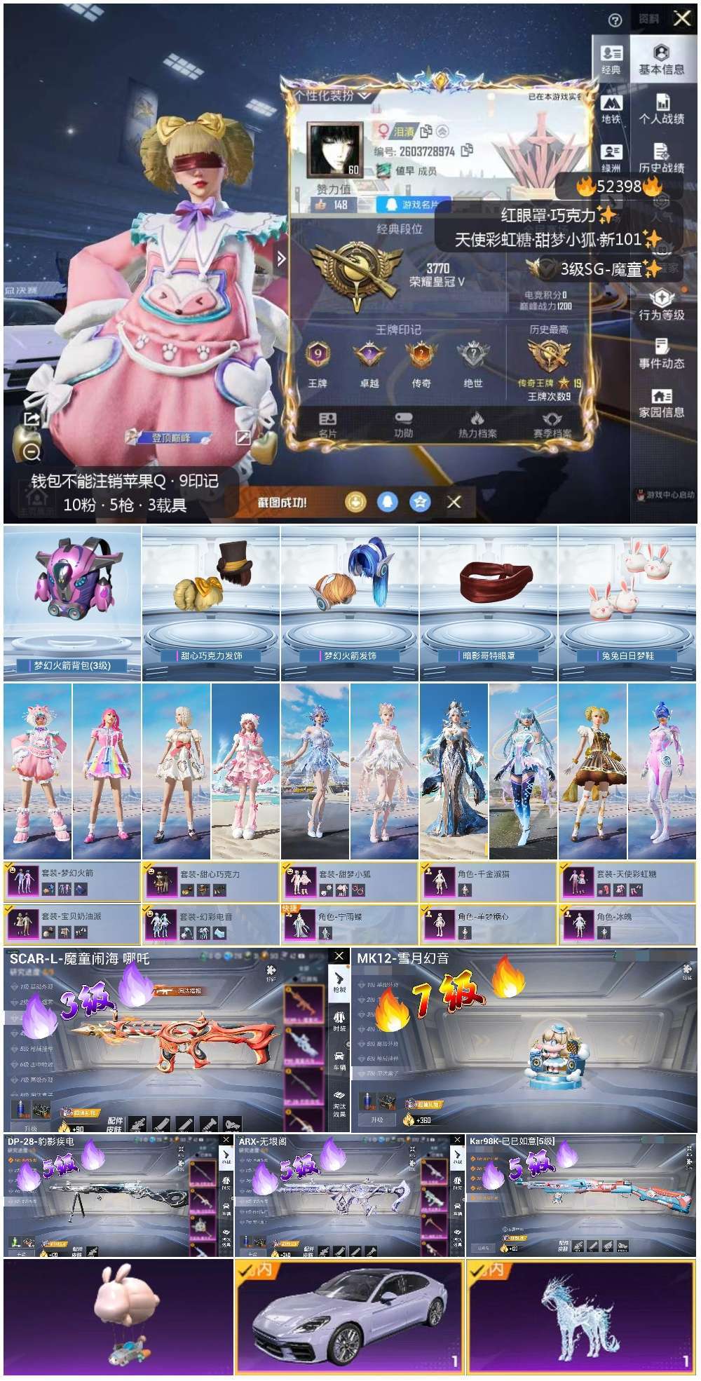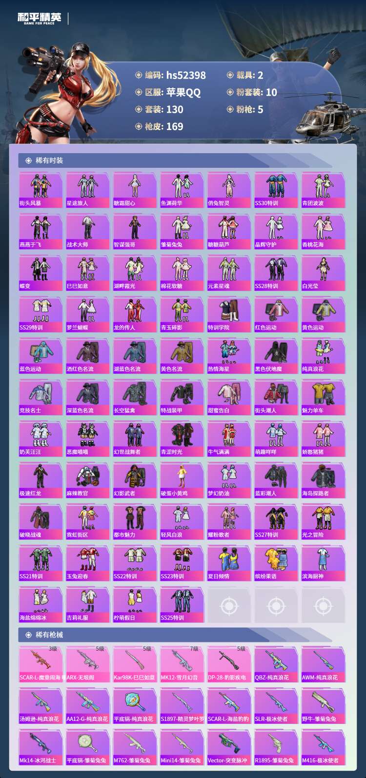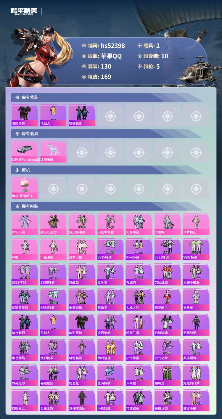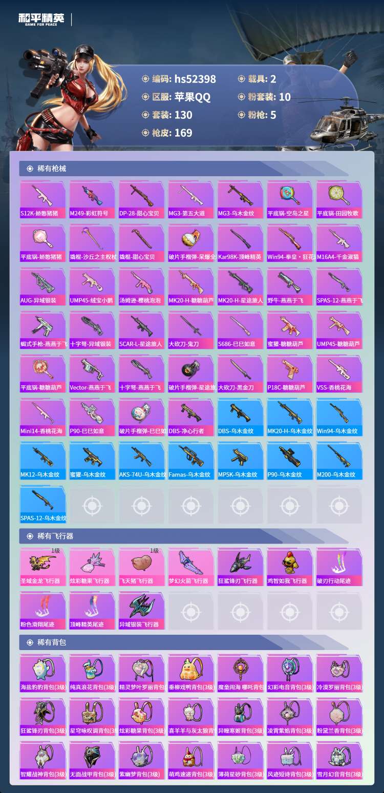hs52398 苹果手Q-9王牌印记-10粉装-5特效枪-2载具-56553热力值-130套装-16