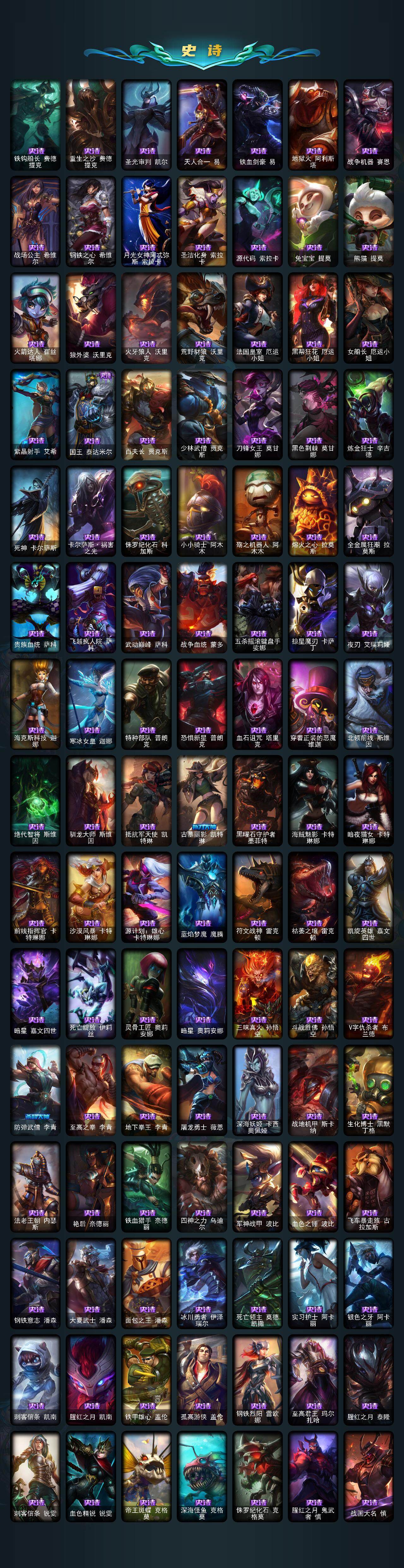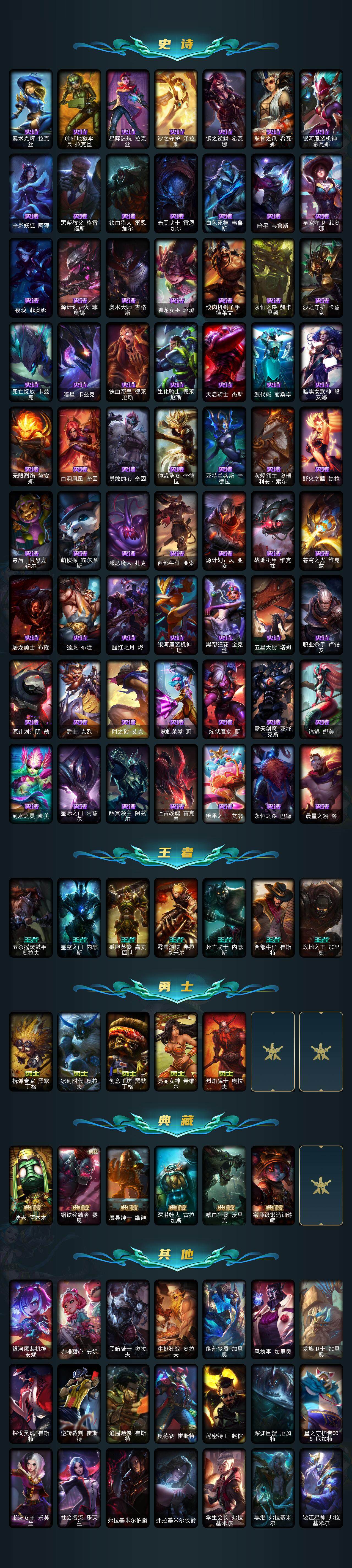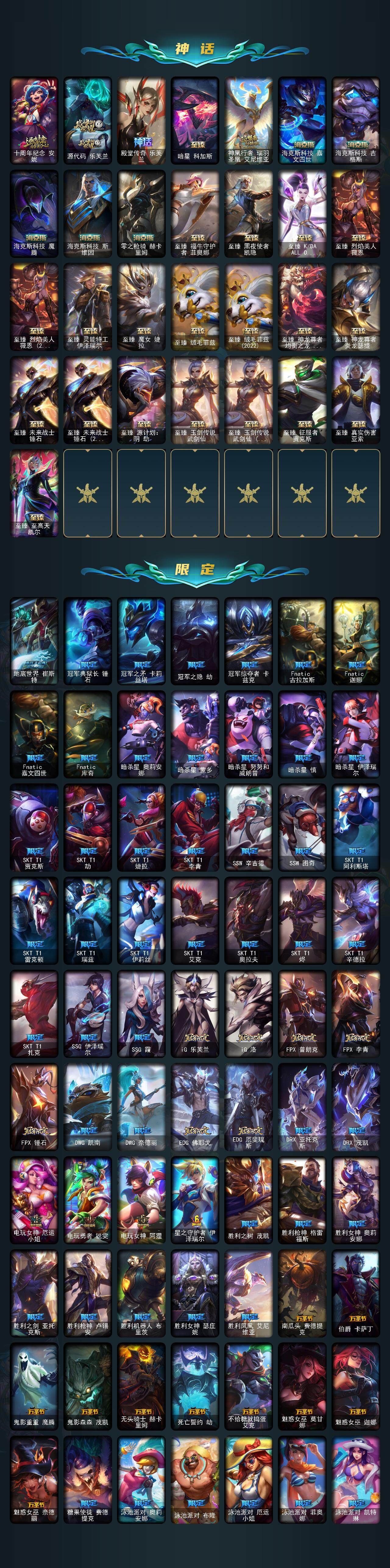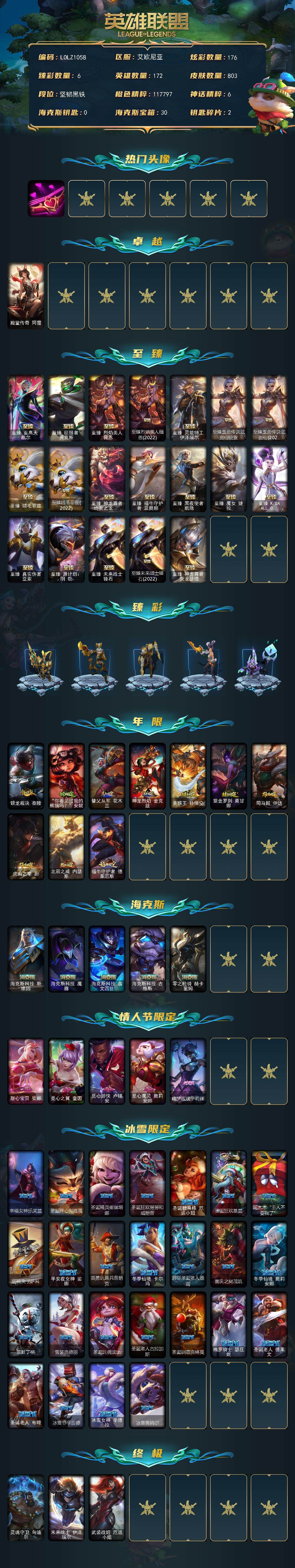 172英雄/803皮肤/3终极/29神话/135限定/6臻彩/