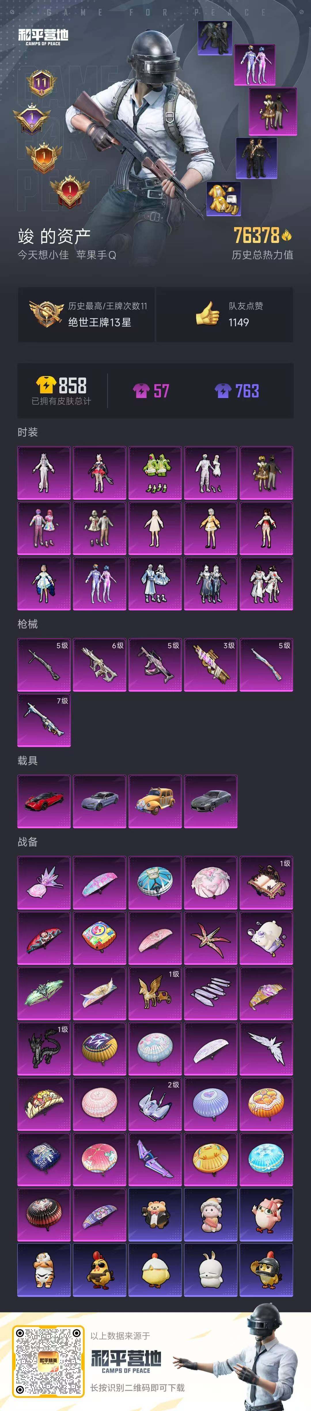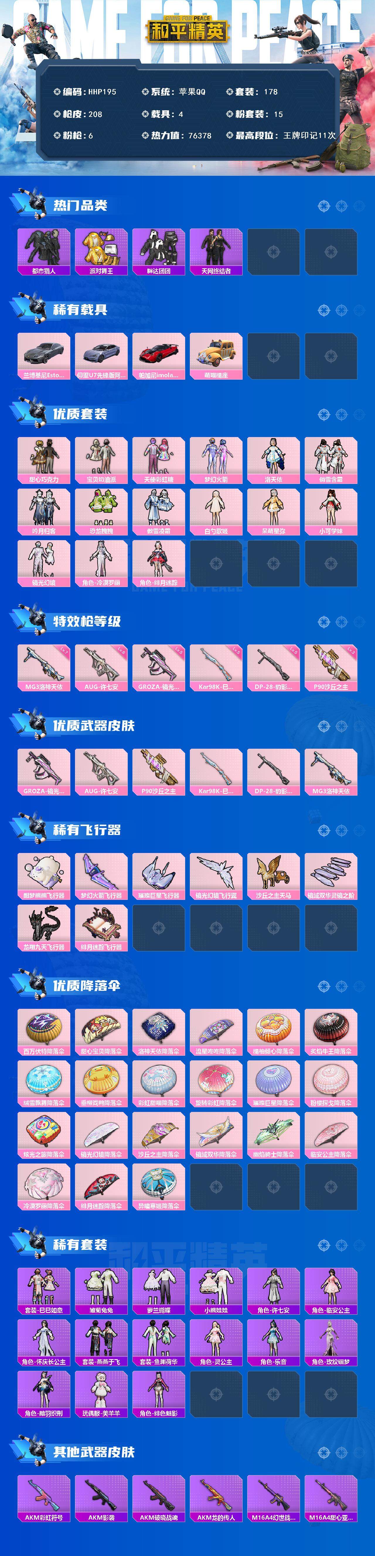 iOS 身法素材号 绝世印记 都市猎人/甜心巧克力//天网终结者/派对舞王金靴子/梦幻火箭/柯基背包-15粉装-6特效枪-4载具-10粉色飞行器-76378热力值-11王牌印记-178套装-208枪皮