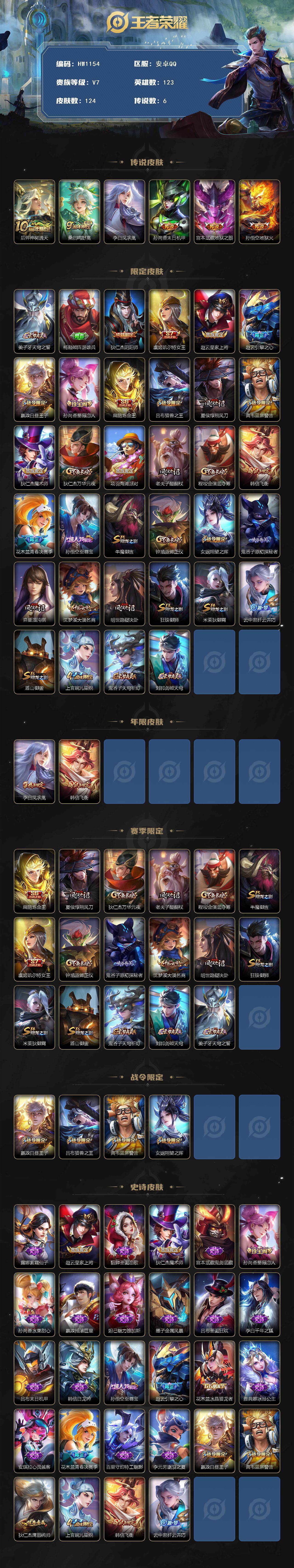 安卓QQ-6传说-124皮肤-123英雄-绝世王者-凤求凰/至尊宝/飞衡/青春决赛季 V7-124皮肤6传说28史诗 末日机甲+未