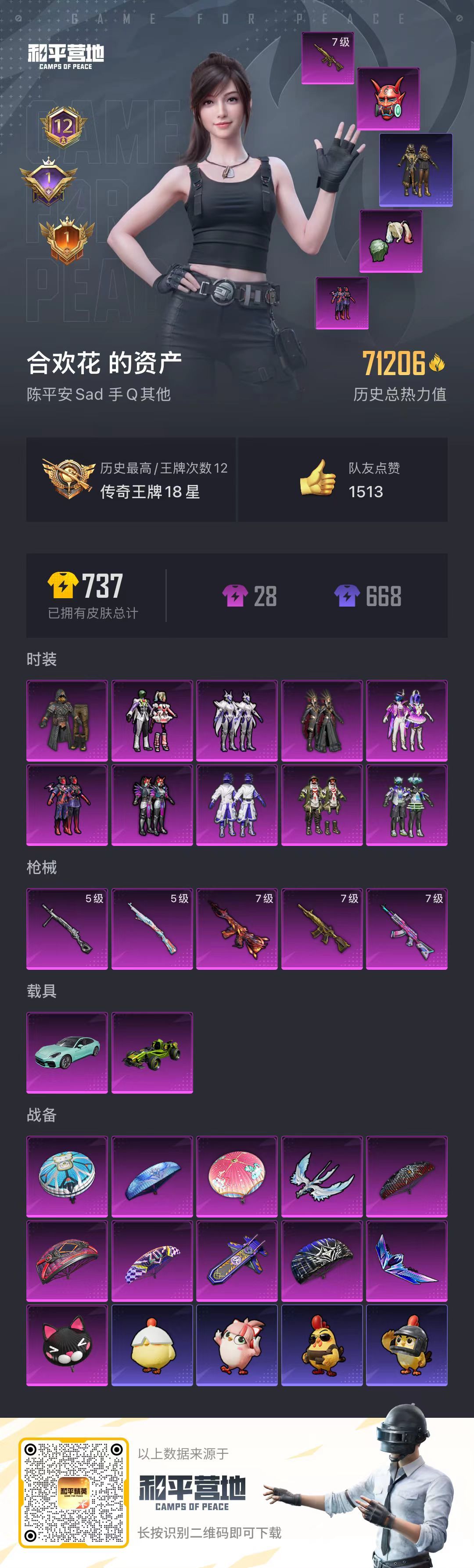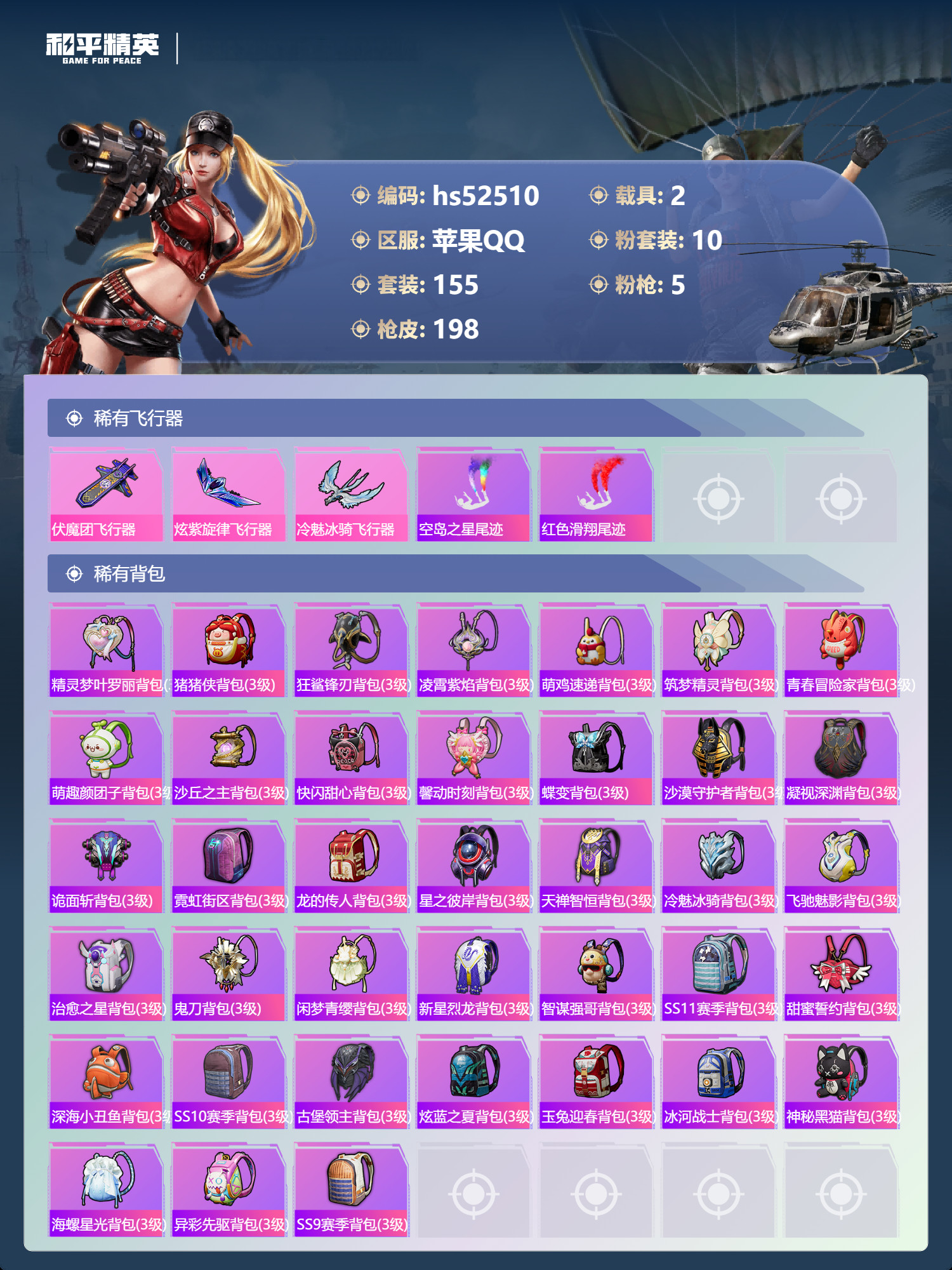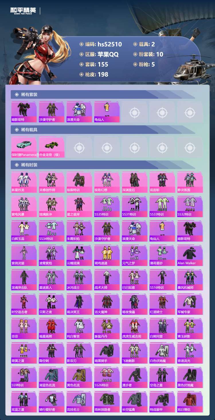 hs52510 安卓手Q-12王牌印记-10粉装-5特效枪-2载具-71206热力值-155套装-1