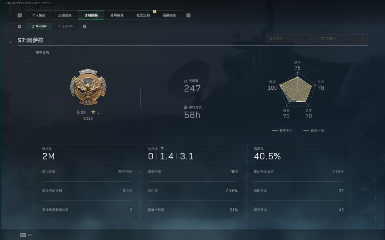 H9338//区服QQ/哈夫币30511748/总资产173M/行动等级60/战场