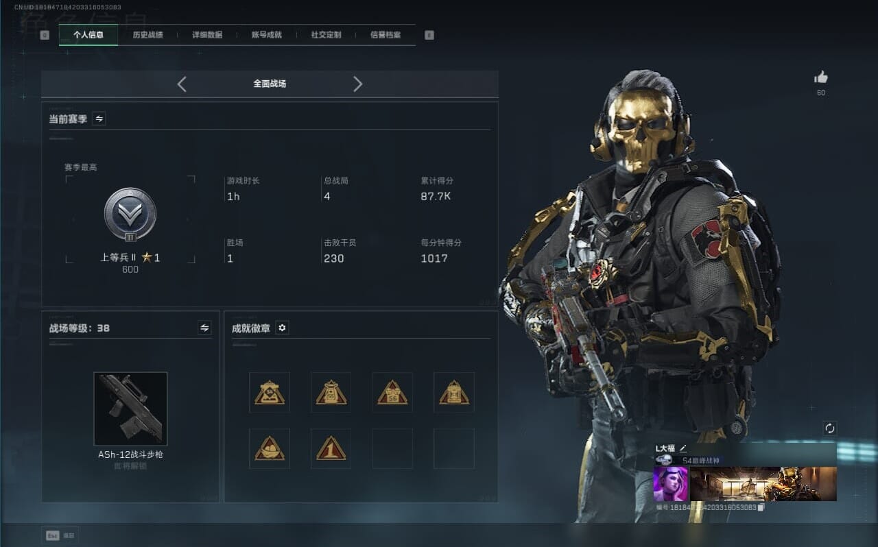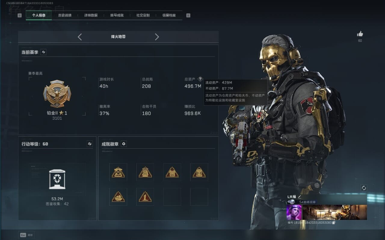 H9332/区服QQ/哈弗币169581320/总资产496M/行动等级60/战场等级38/【特战干