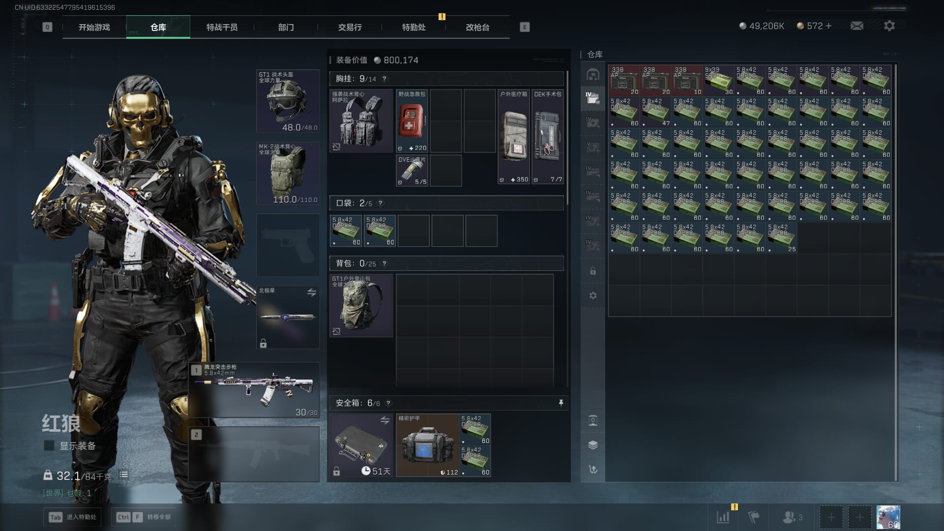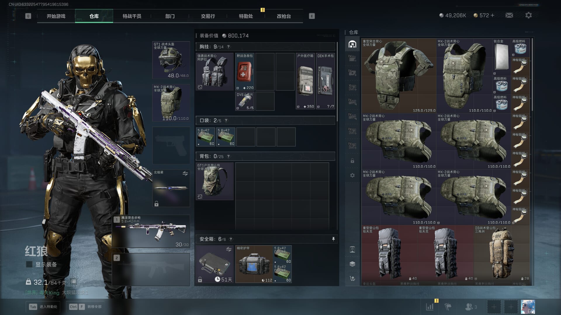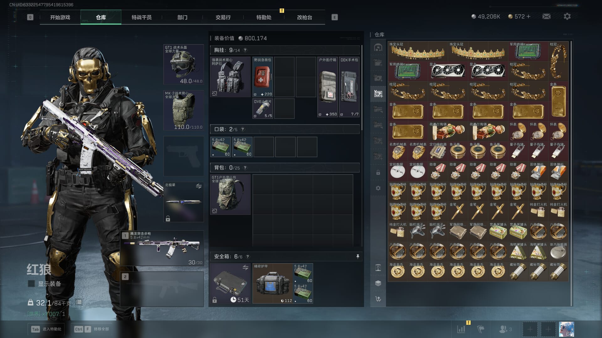 D10824/QQ区/可二次/钱包注销/【总资产:203M+近战北极星+高级安全箱+红狼蚀金玫瑰+腾