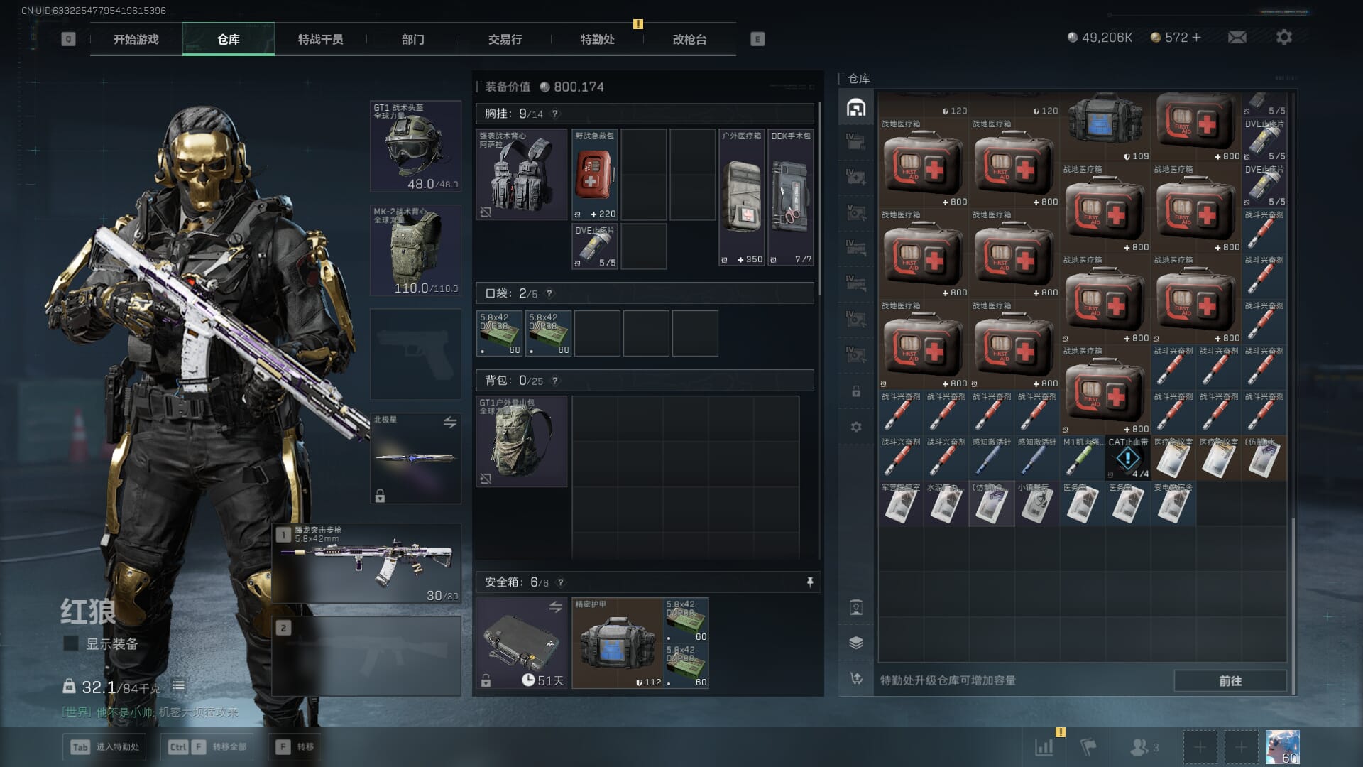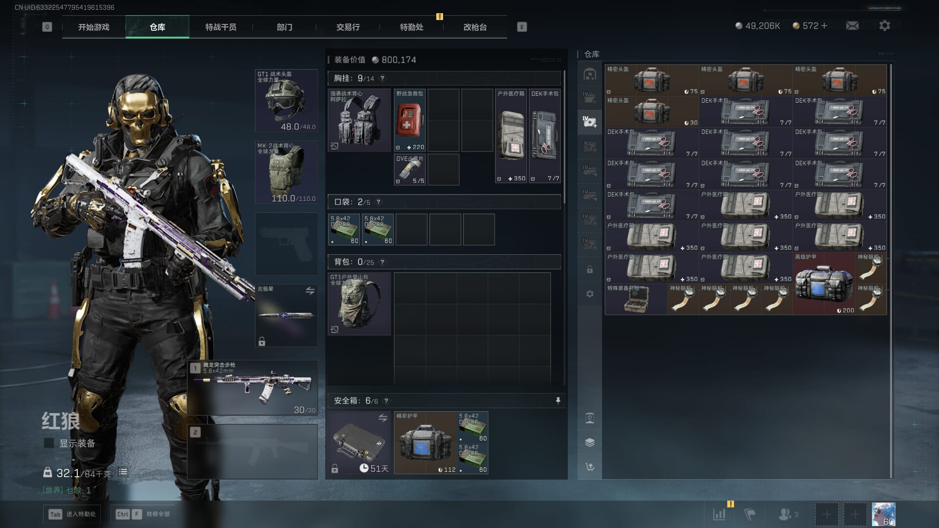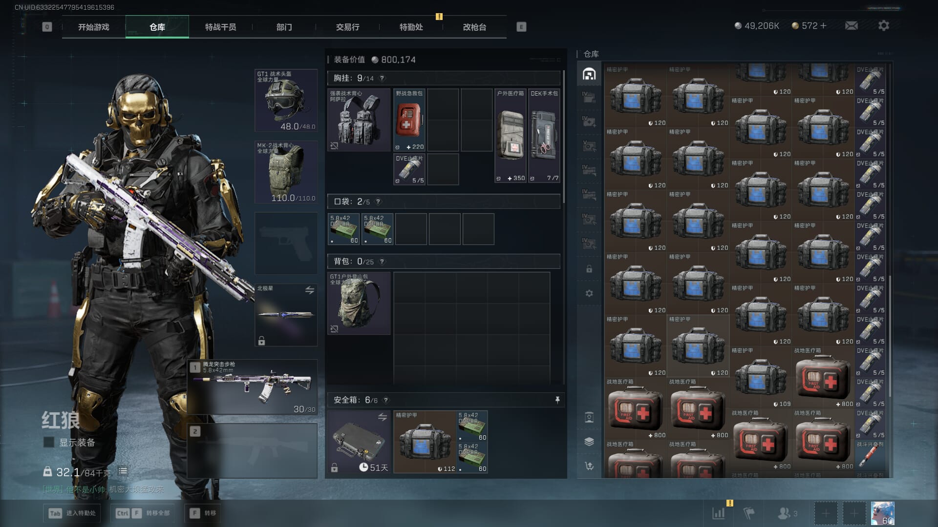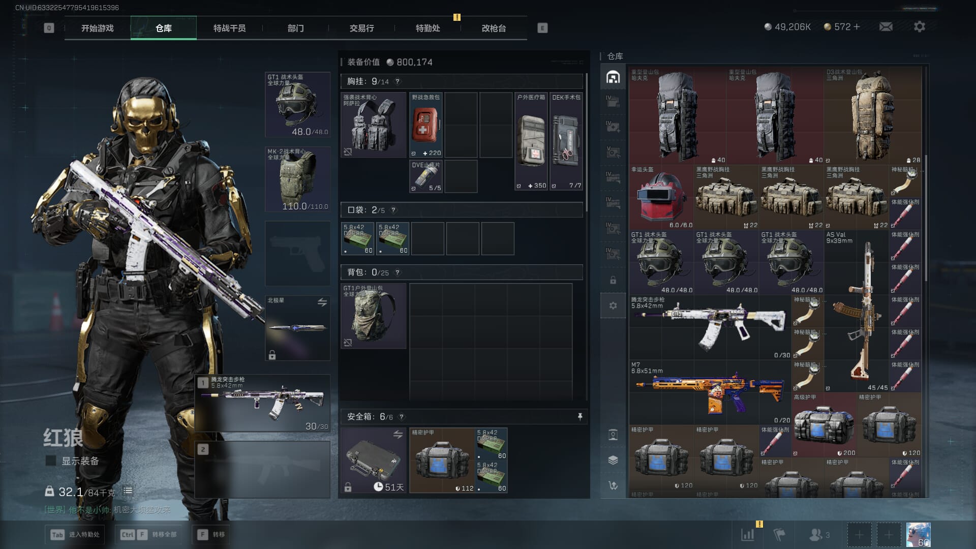 D10824/QQ区/可二次/钱包注销/【总资产:203M+近战北极星+高级安全箱+红狼蚀金玫瑰+腾