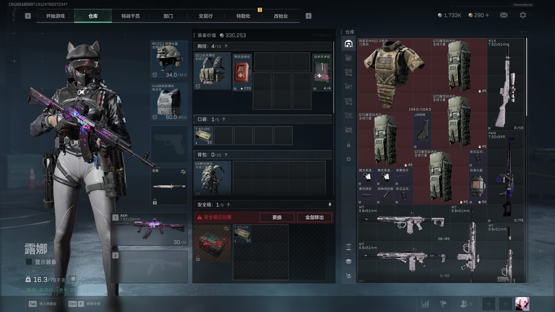 D10819/QQ区/可二次/钱包注销/【总资产:207.1M+S7顶级安全箱+红狼蚀金玫瑰+露娜黑