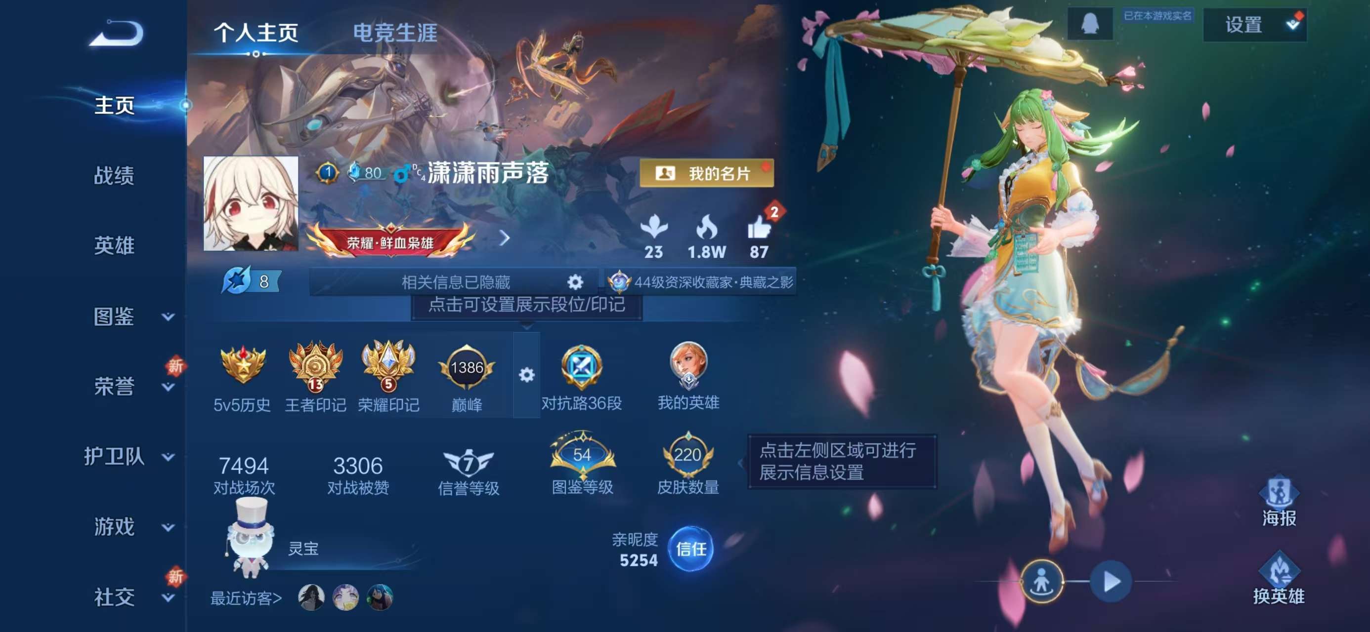 安卓QQ/荣耀王者/220皮肤/126英雄/1典藏/0珍品无双/0无双/1珍品传说/19传说/72史