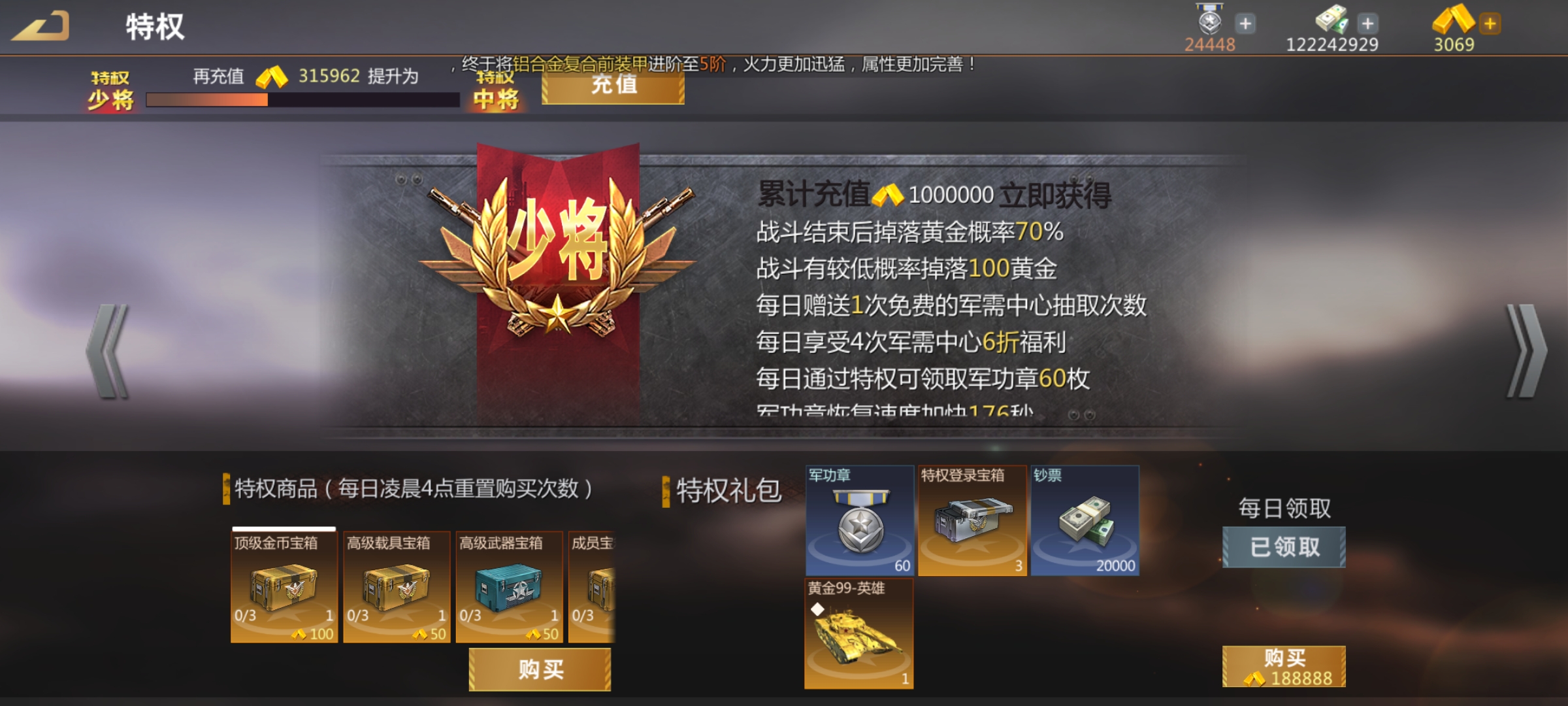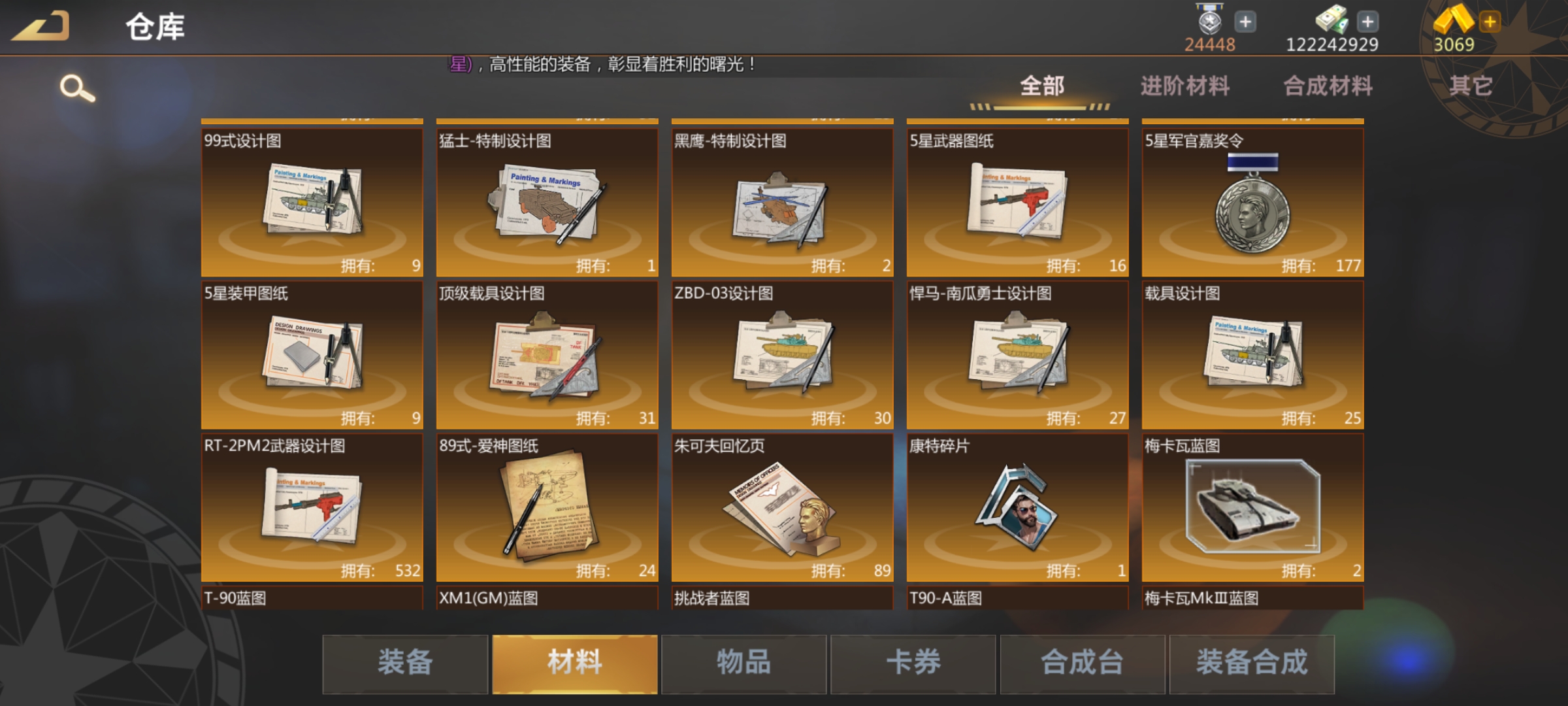 哈隆双顶指,朱可夫过半,部件全红,科技精研满,军需战神套,技能满,锻造已开。顶级载具六七辆。