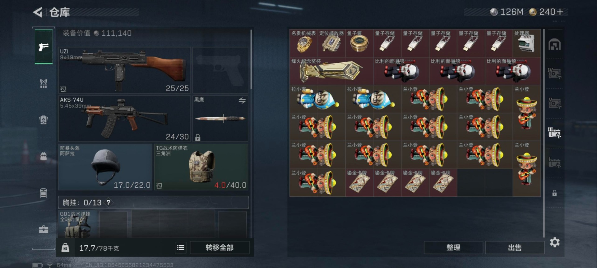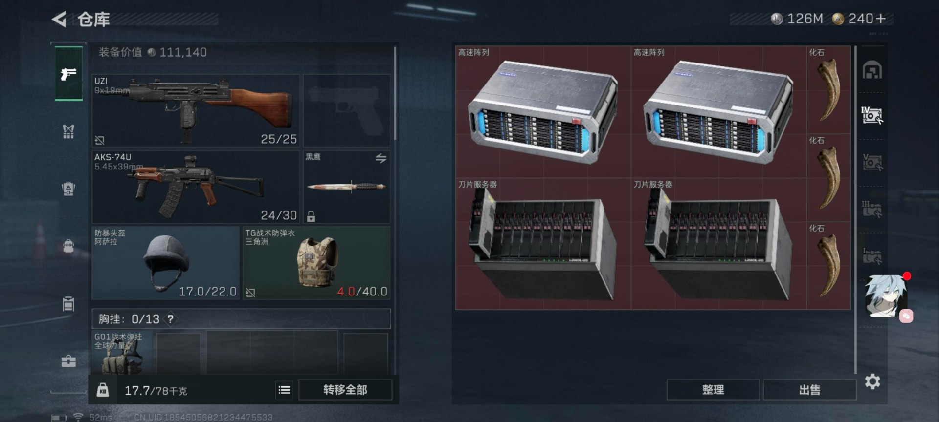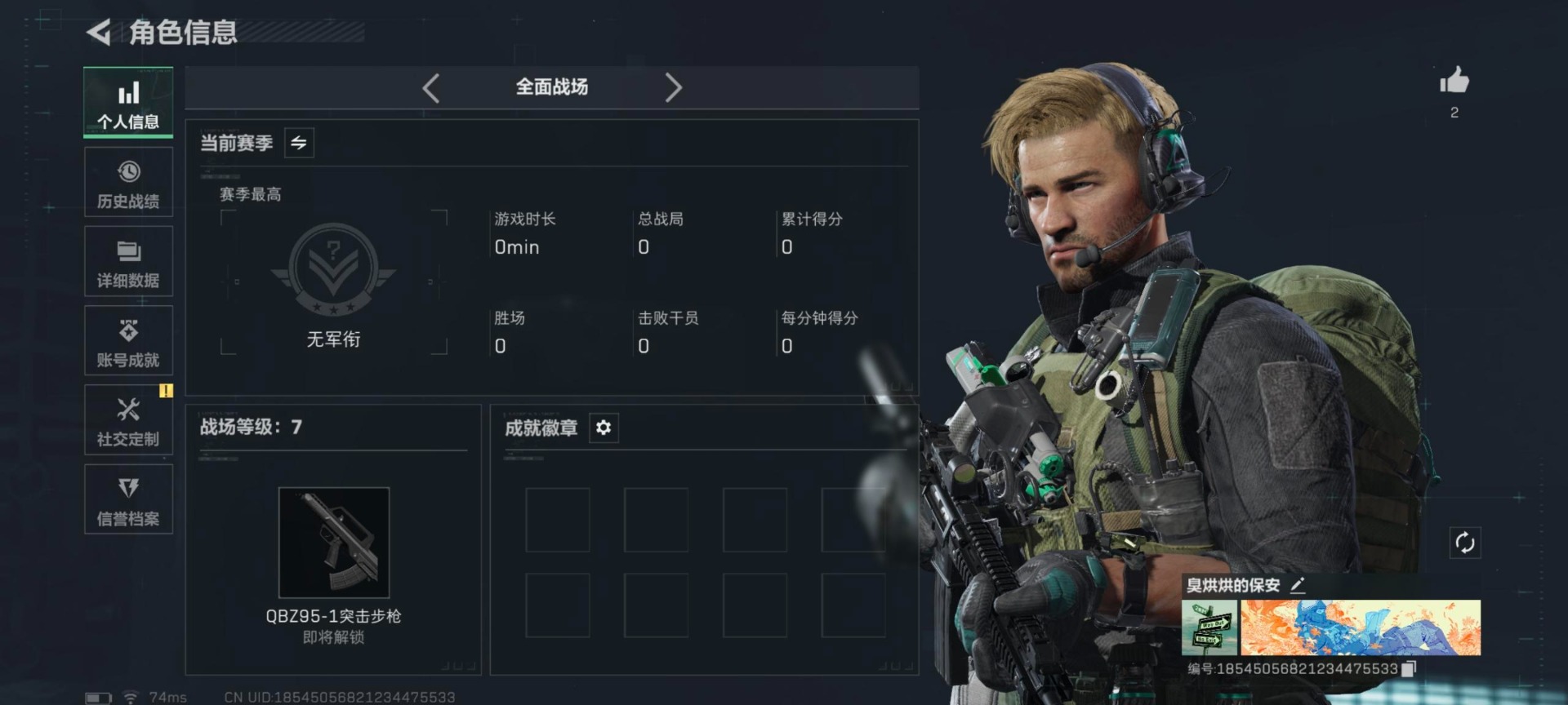 总资产:183.9M 1干员外观 5传说枪械 哈夫币:126K 可二次 可修改实名
