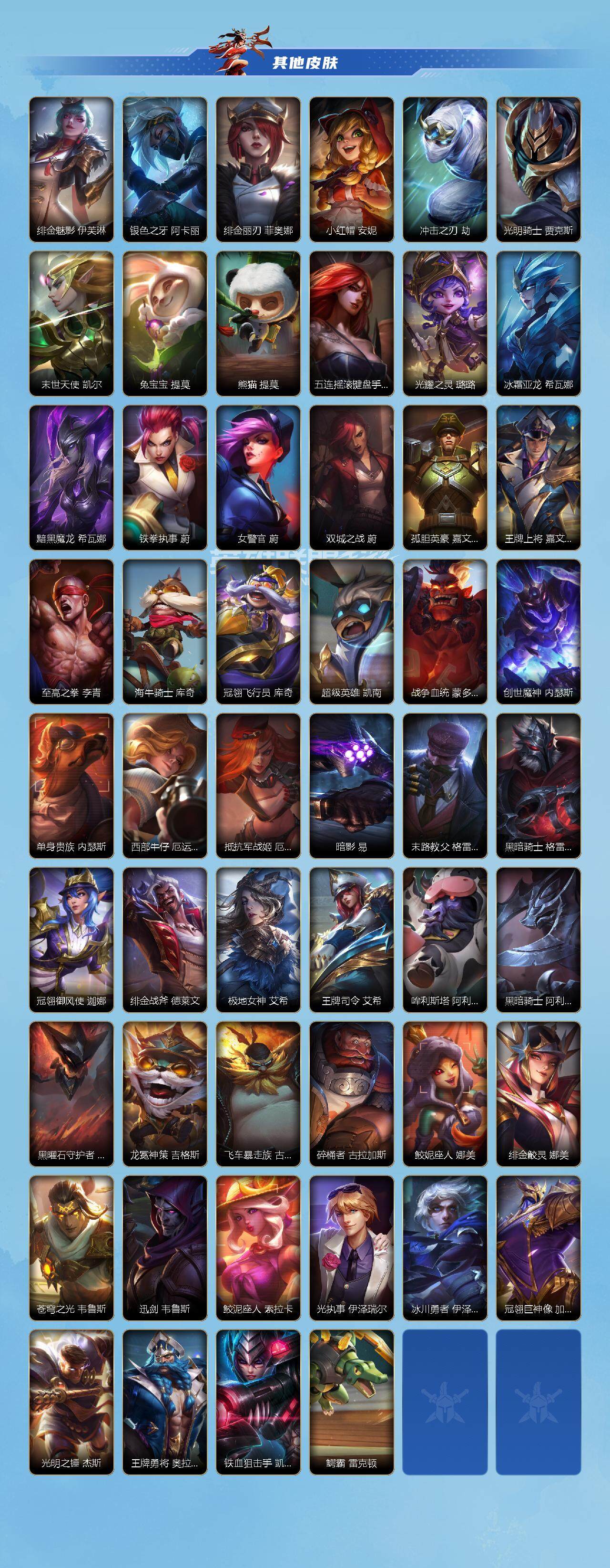 【LSC267】132英雄/121皮肤/2神话/15传说/34史诗/流光翡翠/暮星追影 卡莎/蝶恋春 凯特琳/暗星女王 拉克丝/光明哨兵 薇恩/暗星尊 烬/星域游侠 崔斯特/黑夜使者 亚索/天煞 劫/西部魔影 卢锡安/驯龙炮手 崔丝塔娜/欧米伽小队 幽灵特工 提莫/神拳 李青/福牛守护者 厄运小姐/神王 德莱厄斯/西部天使 艾希/黎明使者 锐雯/最终BOSS 维迦/钢铁军团 盖伦/霸天剑魔 亚托克斯/地狱火 阿木木/摄魂猎手 凯隐/小蜜蜂 努努和威朗普/无限烈焰 黛安娜/猛虎 布隆/玉剑传说 苍