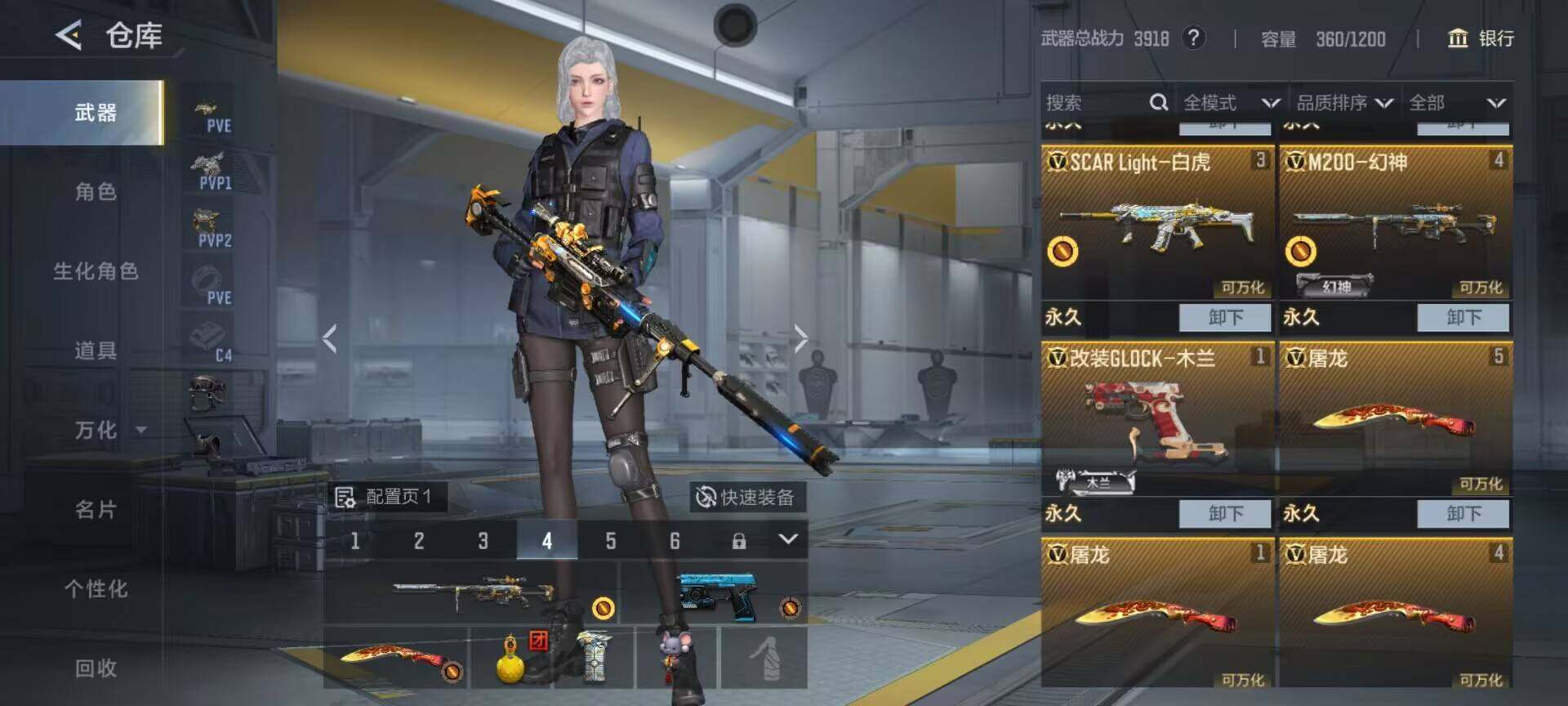 【QZD155】VIP1/48V/M200-幻神/斯薇特X/AK47-黑鲨/AK47-木兰/AK47-谜城烟火/M4A1-黑骑士/M4A1-海骑士/M4A1-运输船/SCAR Light-白虎/SCAR-探星者/AK12-天启/G36-竞技战魂/AWM-天使/AWM-大湾溢彩/M200幻神/SR25-燃烧泰坦/RPK-美杜莎/加特林-堡垒/沙鹰-修罗/改装GLOCK-木兰/龙啸/屠龙/马来剑-毁灭/唐刀-大唐荣耀