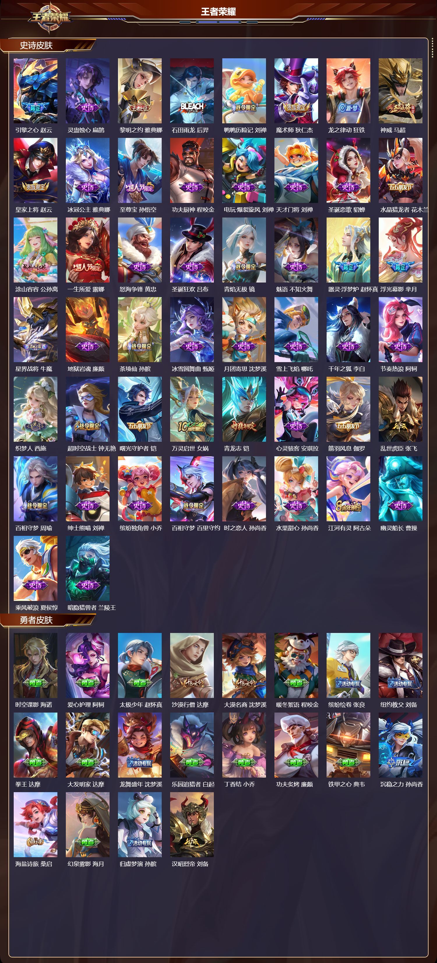 可二次实名/353皮肤/125英雄/1典藏/19传说/100史诗/9稀有英雄