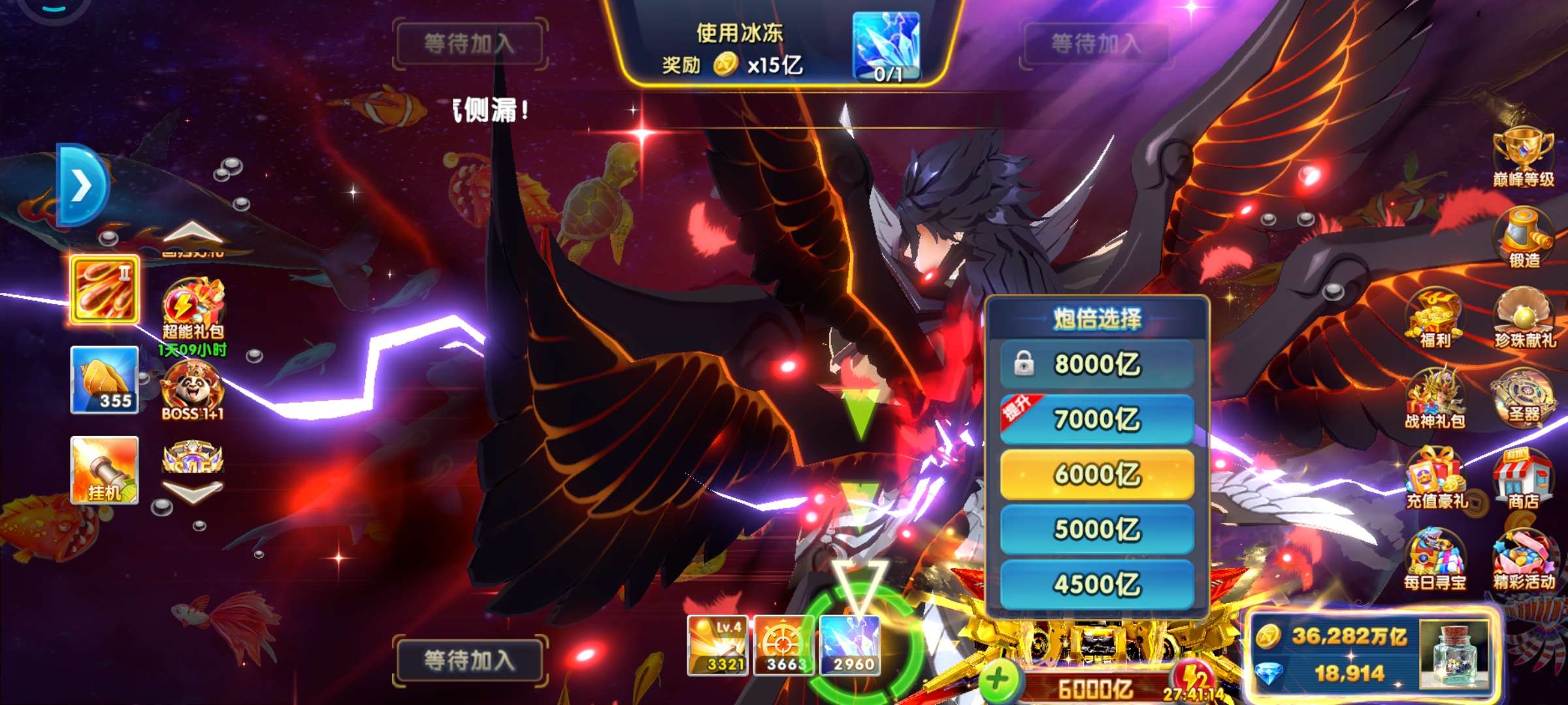 捕鱼大作战小米版本,原60亿炮,原版金币362万亿,巅峰10级,巨多boss未打!